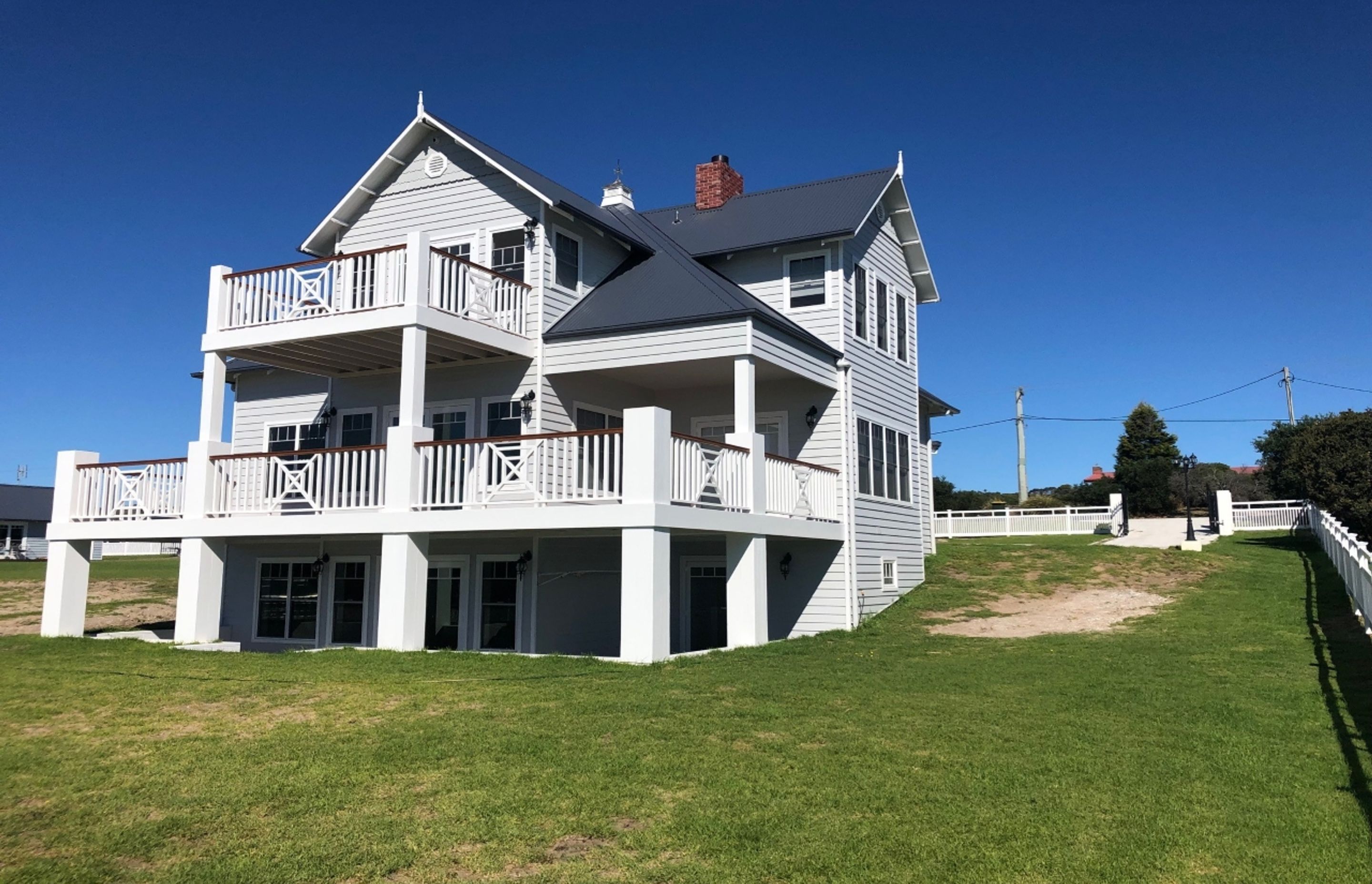 ArchiPro Project Summary - A stunning new build at 128 Bellbuoy Beach, designed by Phillip Hawksley to maximize ocean views and energy efficiency, featuring a Hamptons-inspired layout that harmonizes with its unique coastal environment.