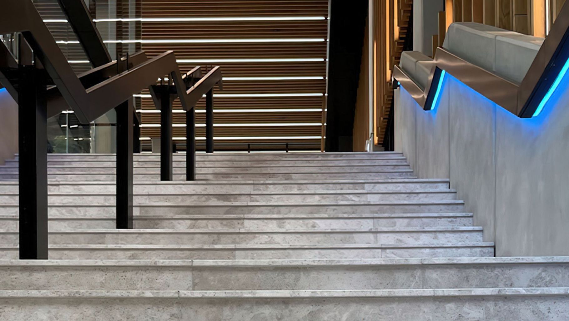 ArchiPro Project Summary - A sustainable development by Mansons TCLM featuring a 6 Star Greenstar rating, 100% NBS seismic rating, and luxurious natural stone finishes throughout, including Petra range stone and G-Stone tiles.