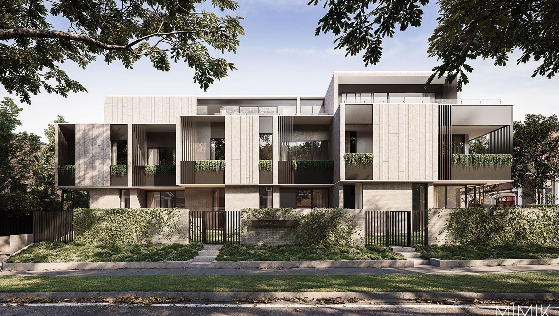 ArchiPro Project Summary - Architectural visualisation of a contemporary residential project located at 64 Charles, Prahran, Melbourne, Australia, created by Mimik Studios.