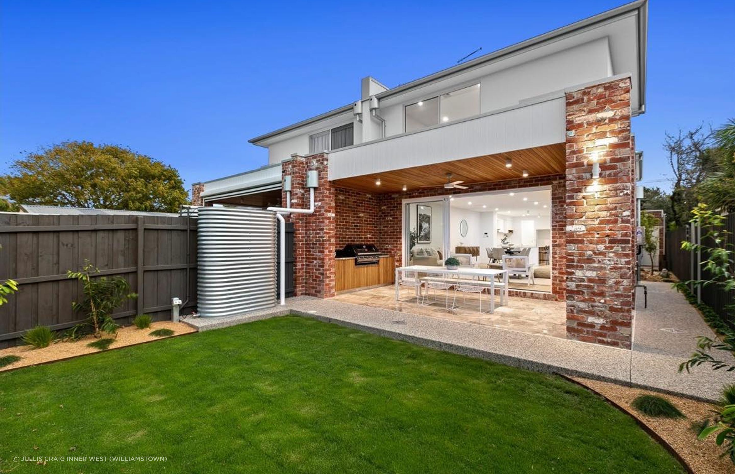 ArchiPro Project Summary - A contemporary set of four-bedroom townhouses in Altona, completed in 2021, featuring innovative design and the thoughtful use of recycled brick, complemented by landscaping that enhances both external and internal aesthetics.