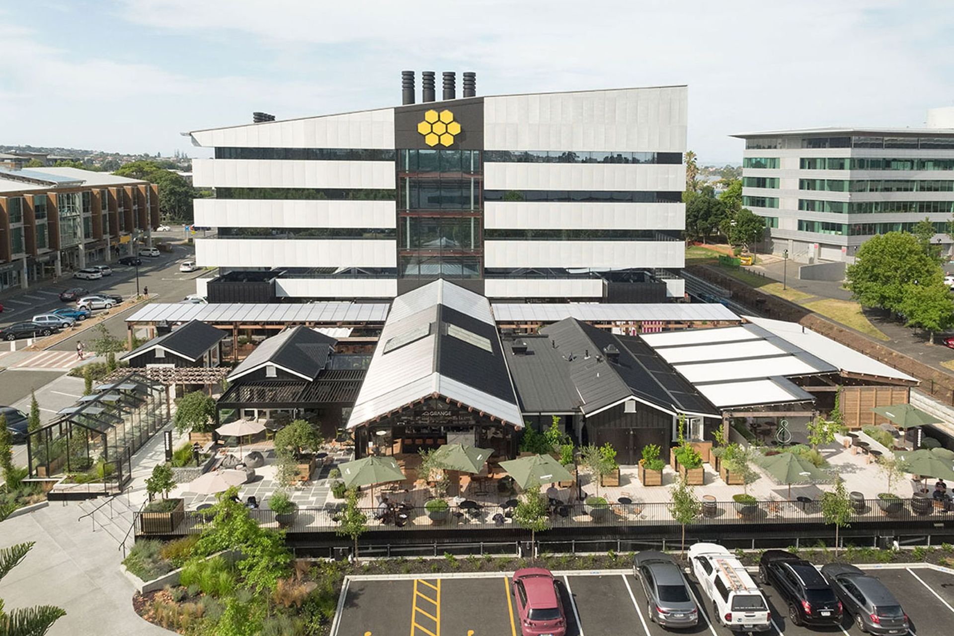 ArchiPro Project Summary - A groundbreaking fusion of urban and rural elements, the award-winning Goodside and B:Hive project in Auckland redefines co-working spaces with innovative design, sustainable landscaping, and a vibrant community atmosphere.