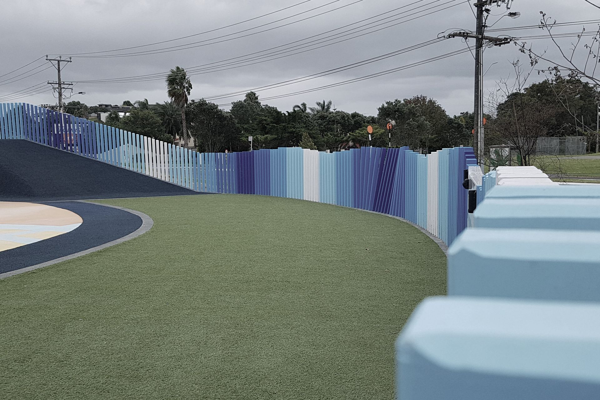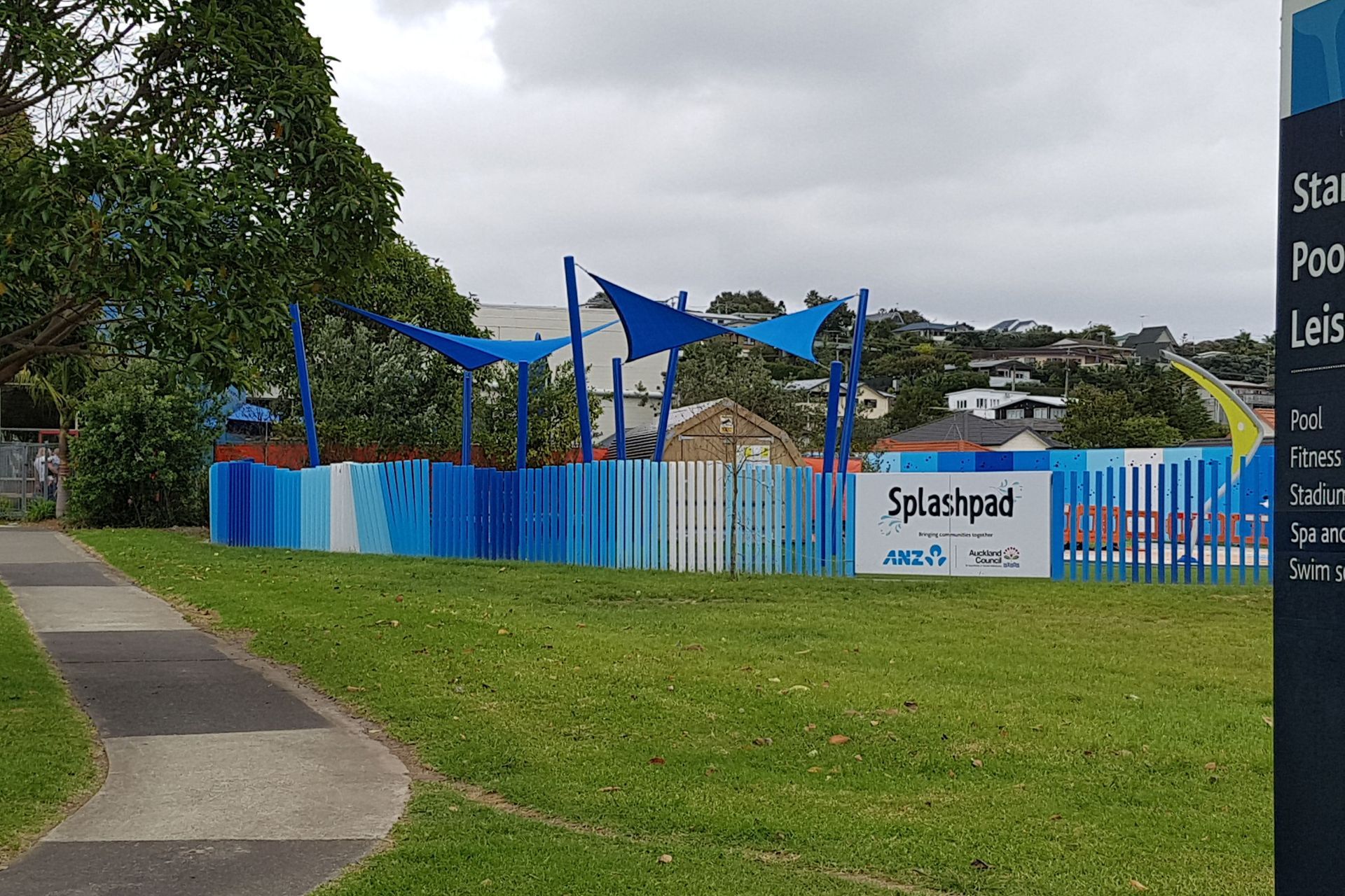 ArchiPro Project Summary - Accoya Fence installation at Stanmore Bay Splash Park, Auckland, featuring non-toxic materials, a selection of Resene paint colours, and a design that ensures safety for children while maintaining exceptional stability and durability.
