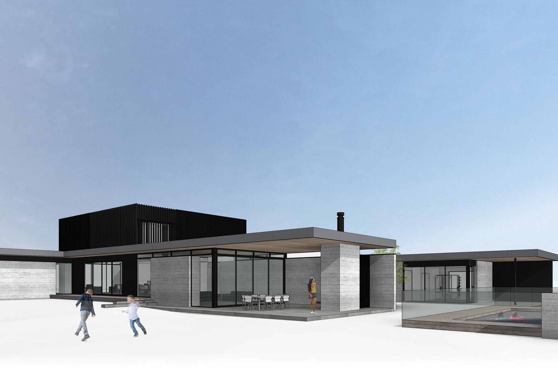 ArchiPro Project Summary - A striking residence featuring dark monolithic cladding and raw shuttered concrete, designed for seamless indoor-outdoor living with a focus on entertaining and a private master suite overlooking a picturesque north-facing gully view.