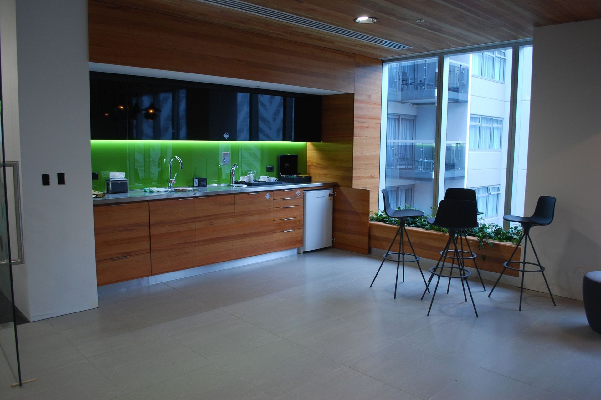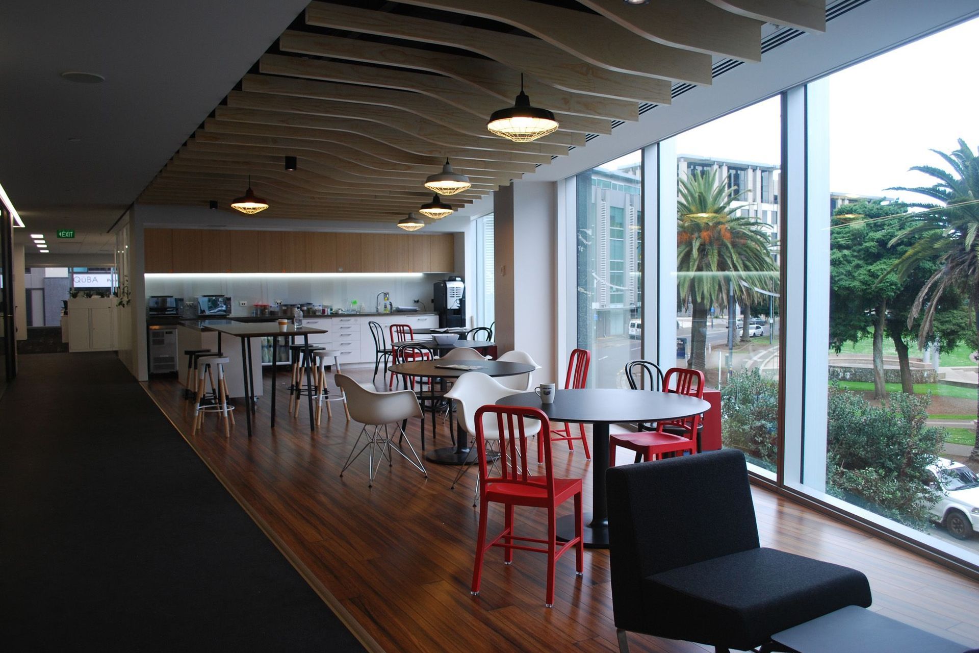 ArchiPro Project Summary - Comprehensive C-Bus lighting control system featuring scheduled lighting for public areas, light harvesting in office spaces, and scene-controlled lighting in meeting rooms, reception, and café areas.