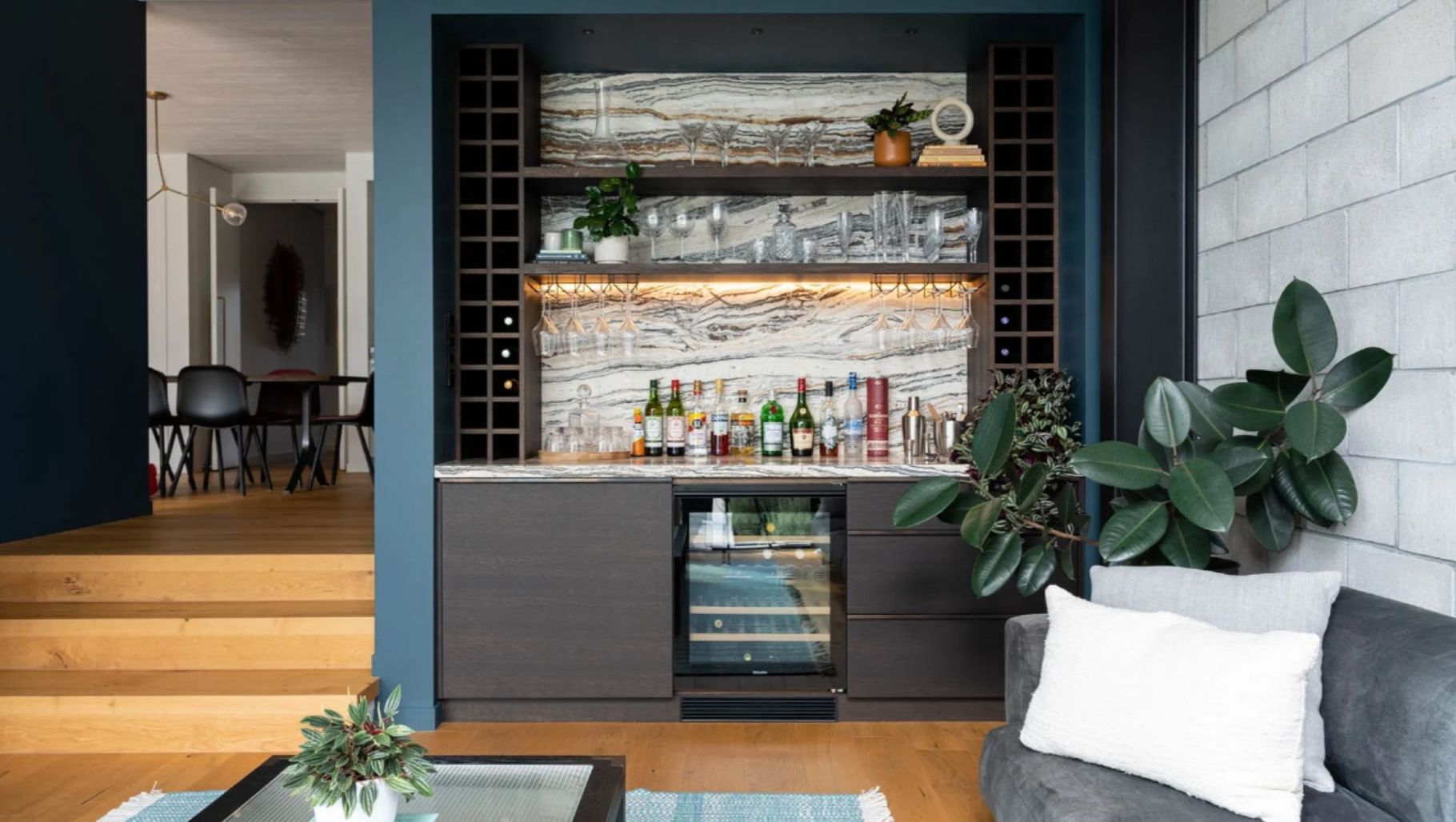ArchiPro Project Summary - A messy children’s playroom transformed into a sleek and generous entertaining area, featuring refined materials and meticulous detailing, completed in 2021.
