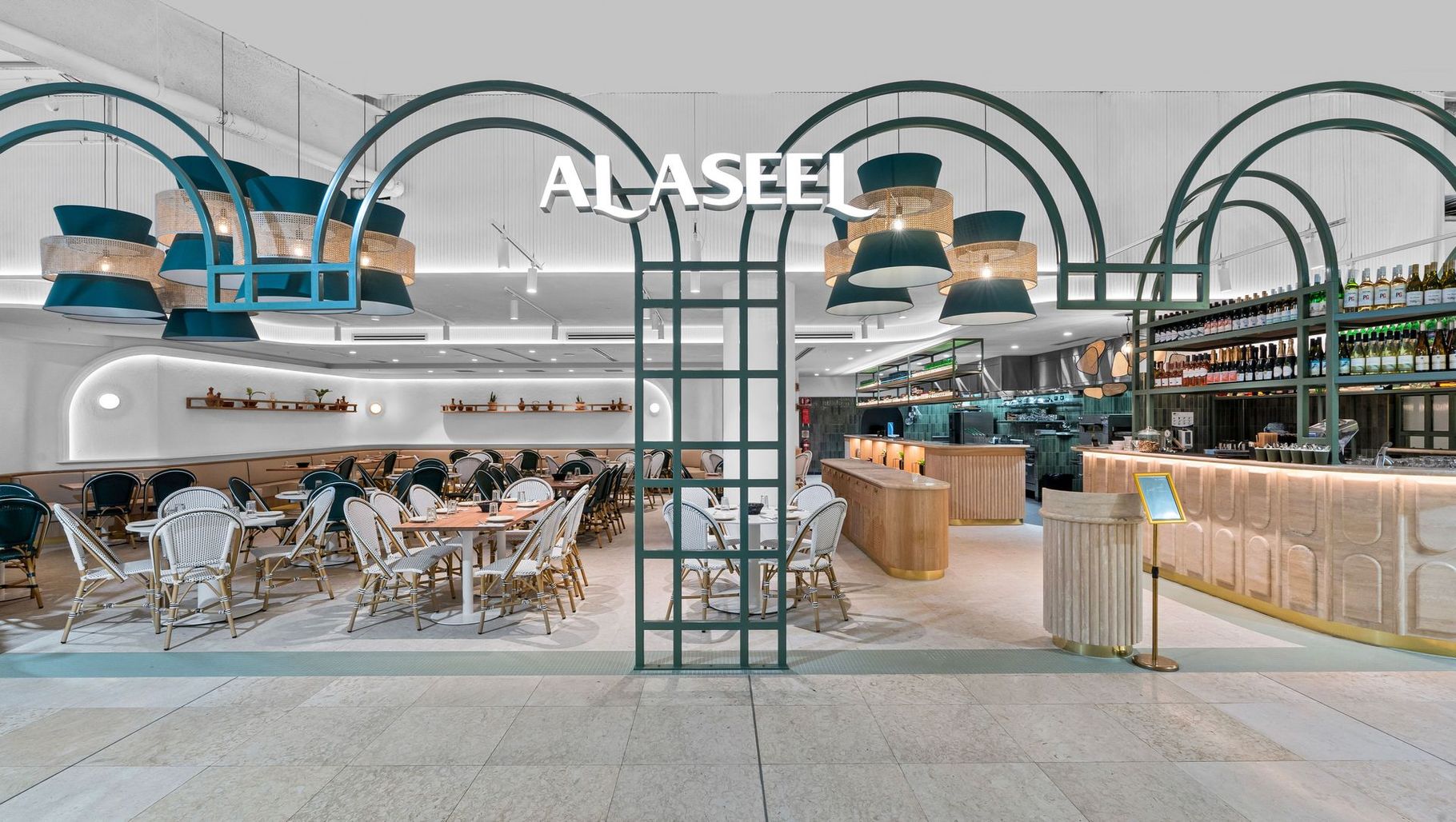 ArchiPro Project Summary - Al Aseel - Chatswood: A Mediterranean dining experience completed in 2024, showcasing a unique blend of traditional Lebanese elements and modern design, creating an inviting and sophisticated atmosphere.