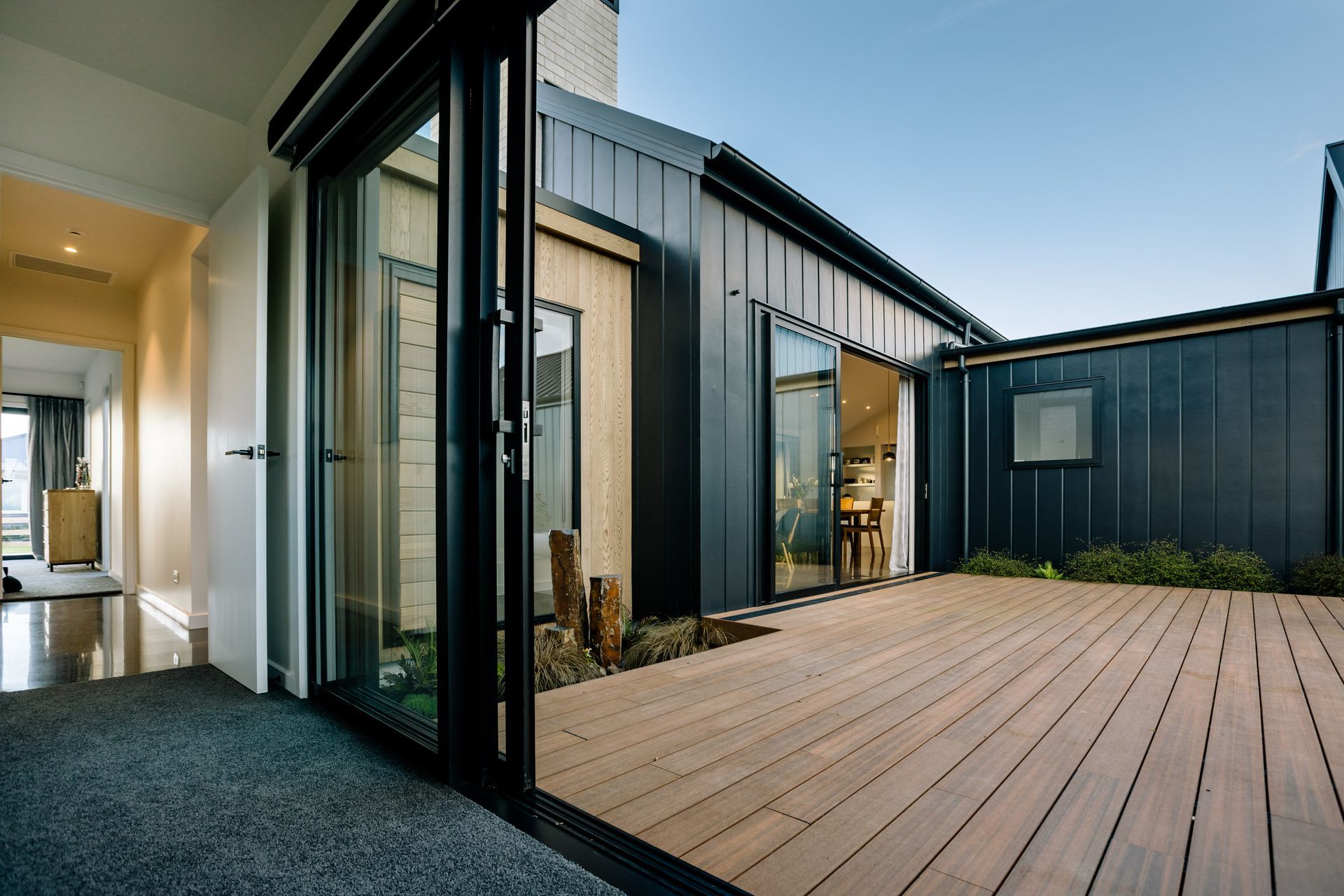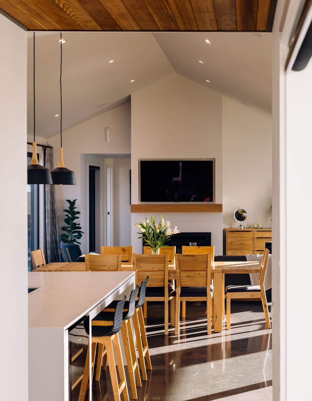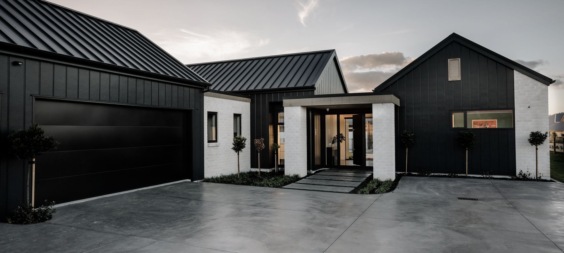 ArchiPro Project Summary - A sophisticated family home featuring a contemporary twist on traditional roof forms, complemented by a modern color and material palette, and infused with warm timber detailing for a fresh Scandi vibe.