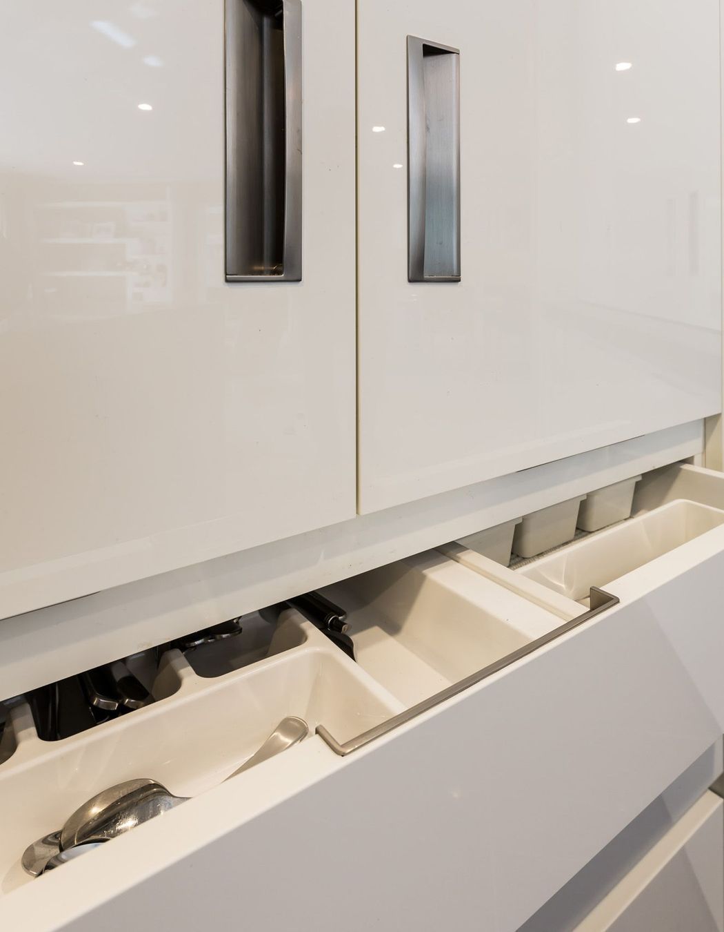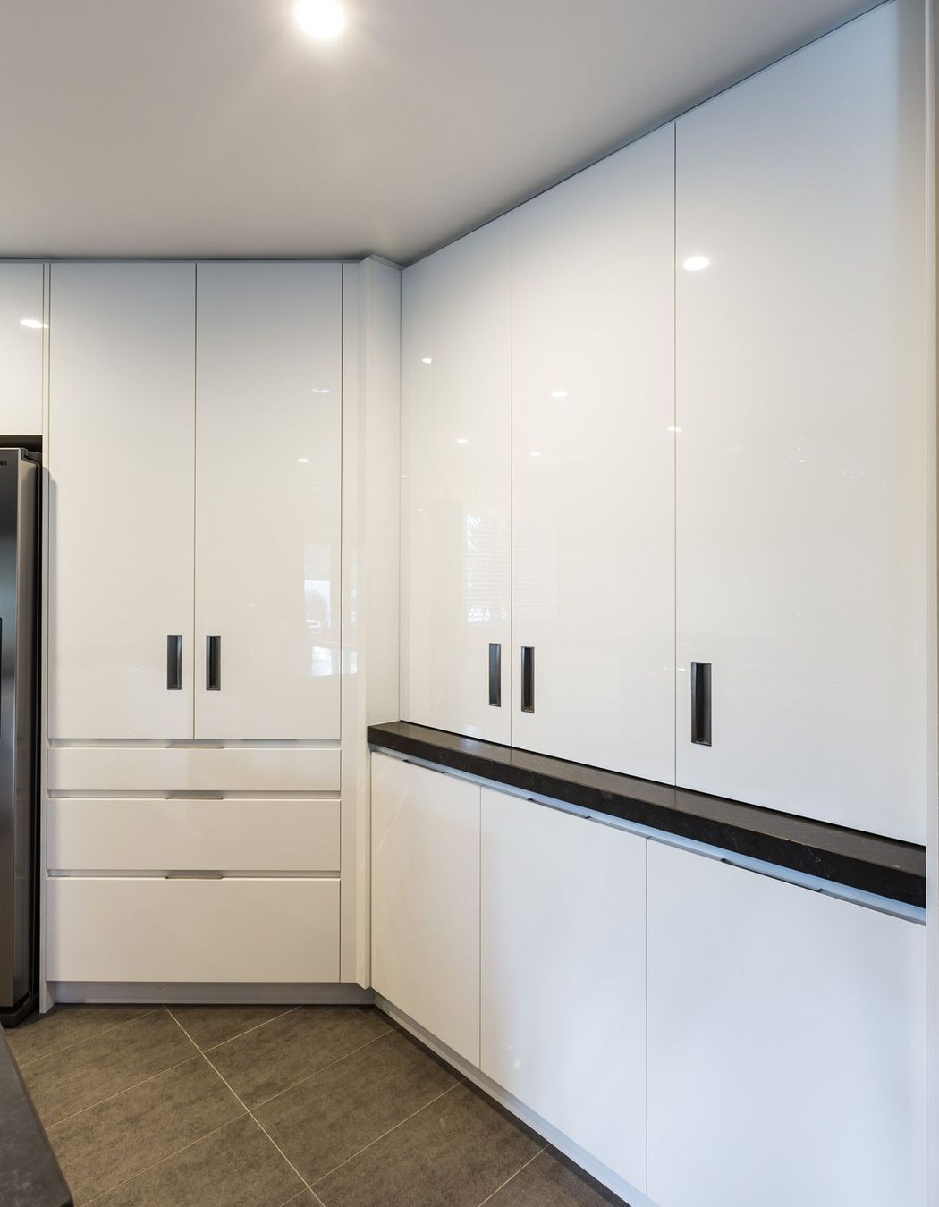 ArchiPro Project Summary - Albany Contrast in Gloss features a blend of modern design and functional elegance, showcasing high-gloss finishes and thoughtful spatial planning.