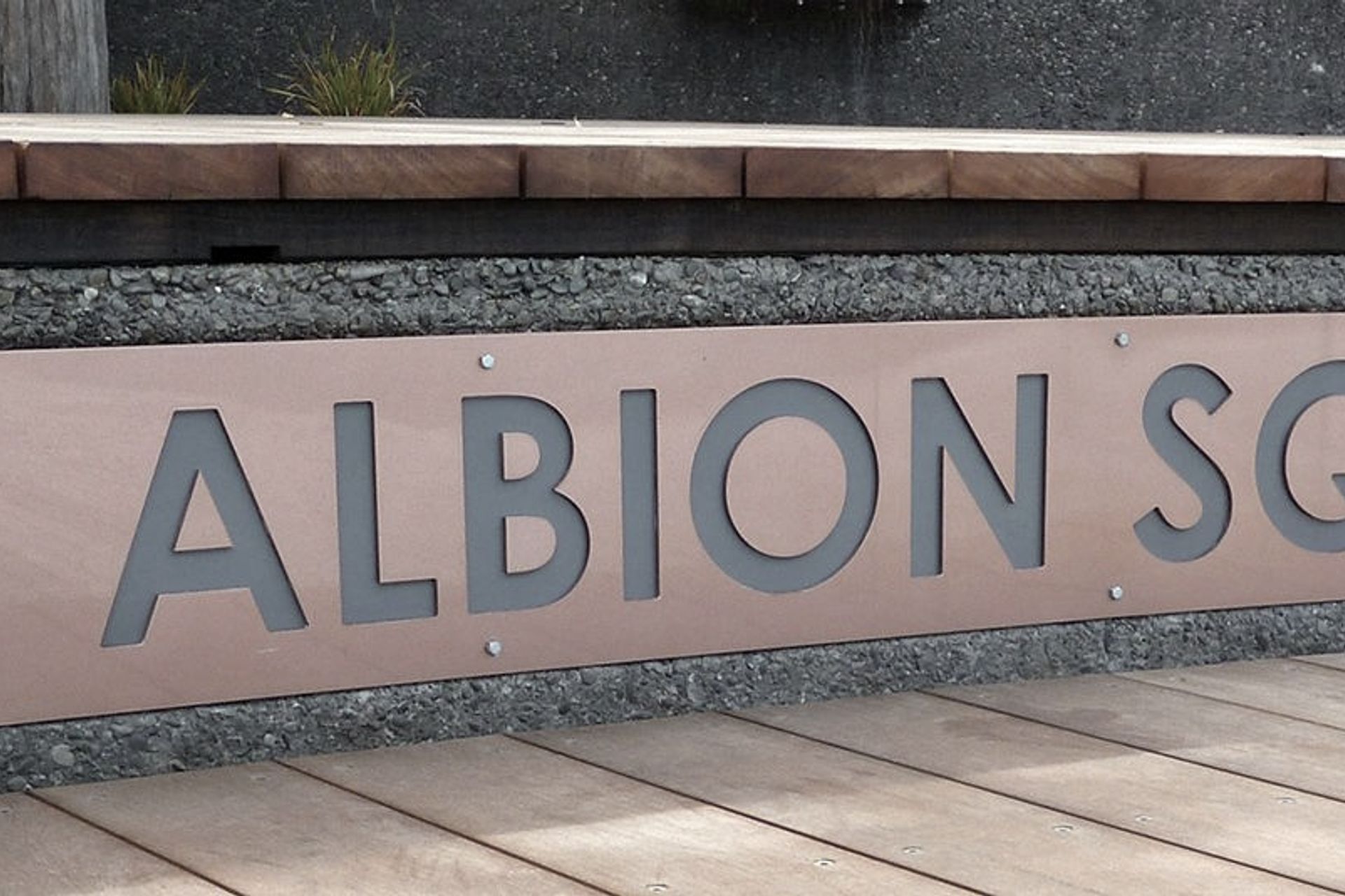ArchiPro Project Summary - A community-focused Civic Square in Lyttelton featuring precision steelwork elements, including a Koru water feature, overhead structures, and elegant handrails, showcasing ENI Engineering Ltd's commitment to quality and aesthetic enhancement.