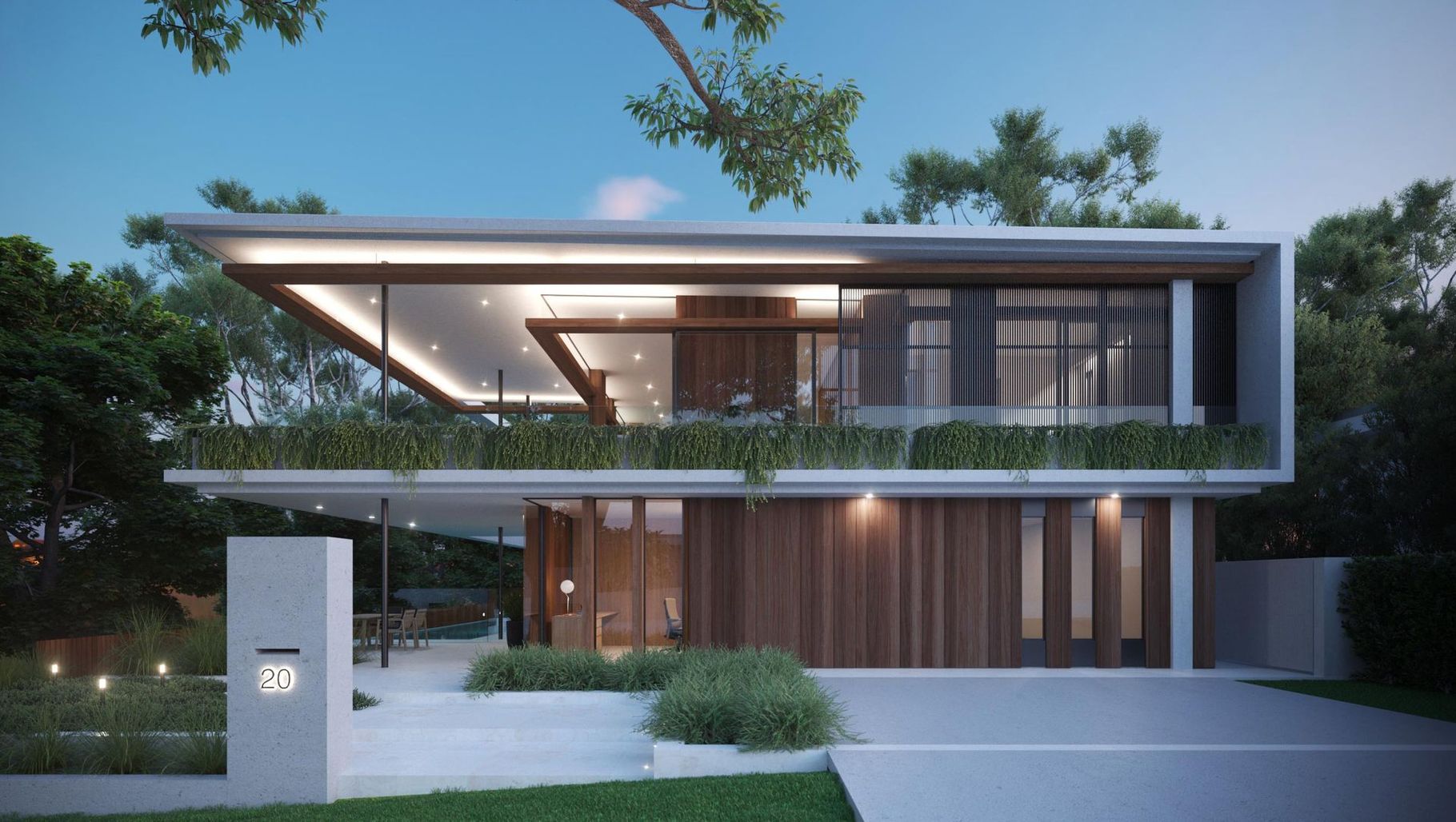 ArchiPro Project Summary - Elegant residence in Noosa Heads featuring stunning river and hinterland views, crafted with a natural palette of stone and timber for a timeless aesthetic.