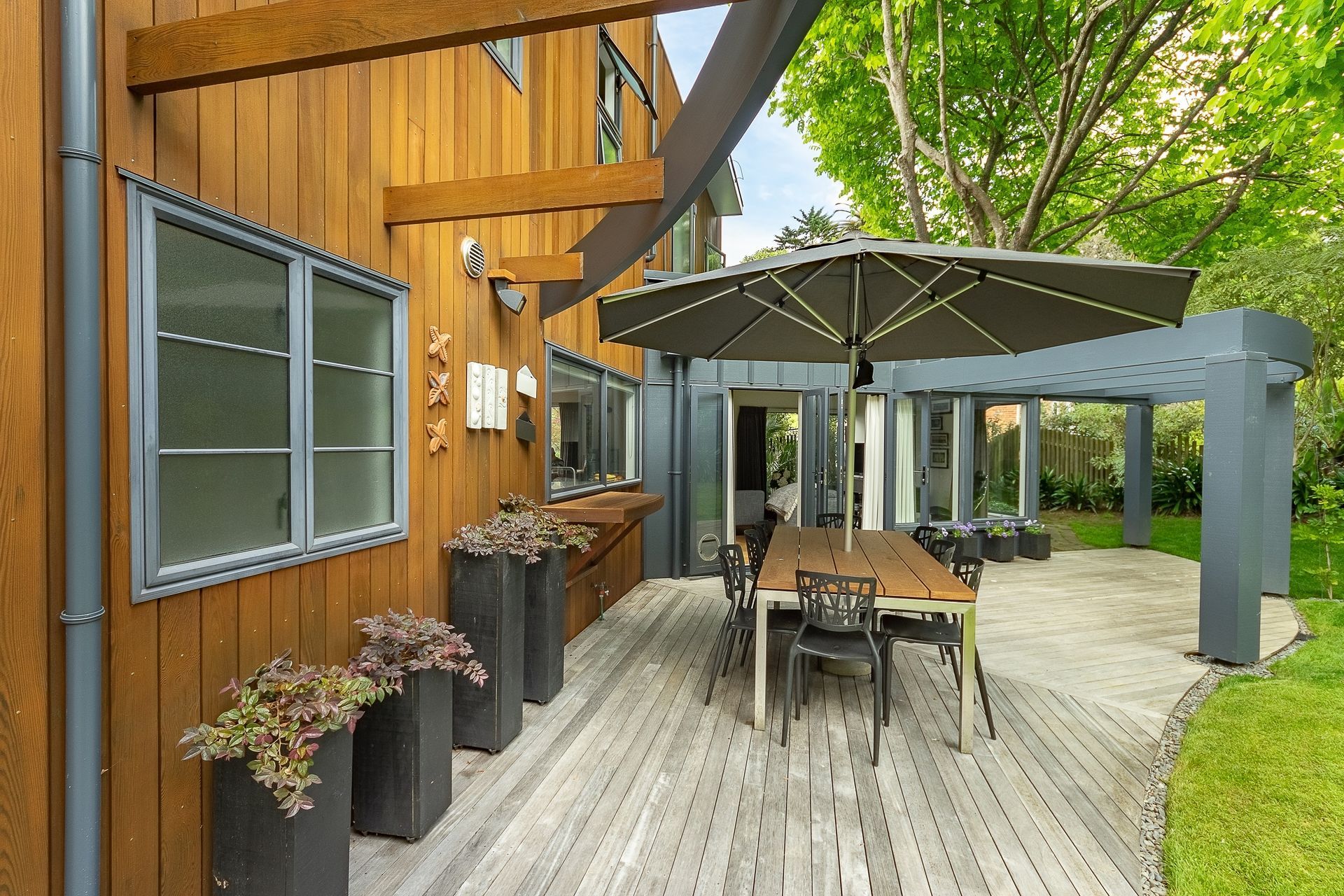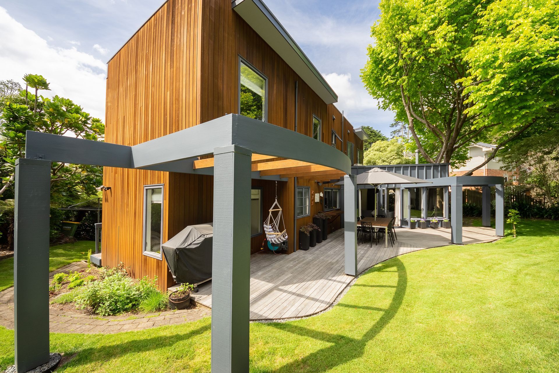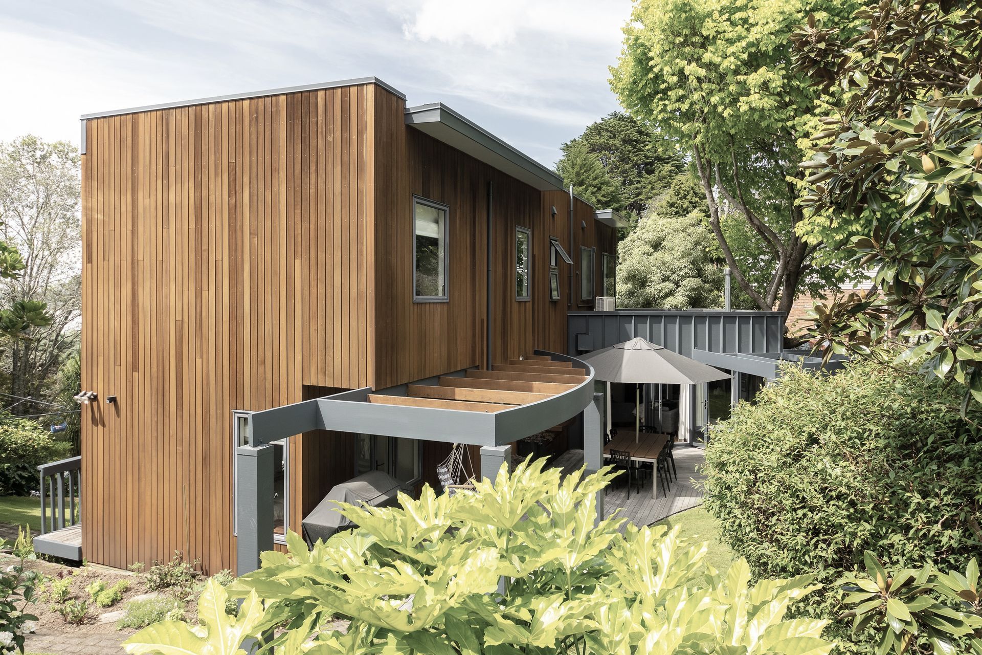 ArchiPro Project Summary - Timeless design meets modern updates in the Allan House, featuring a new leaf-shaped Corten steel shelter and refreshed cedar cladding, showcasing the owners' vision while maintaining the home's original beauty.