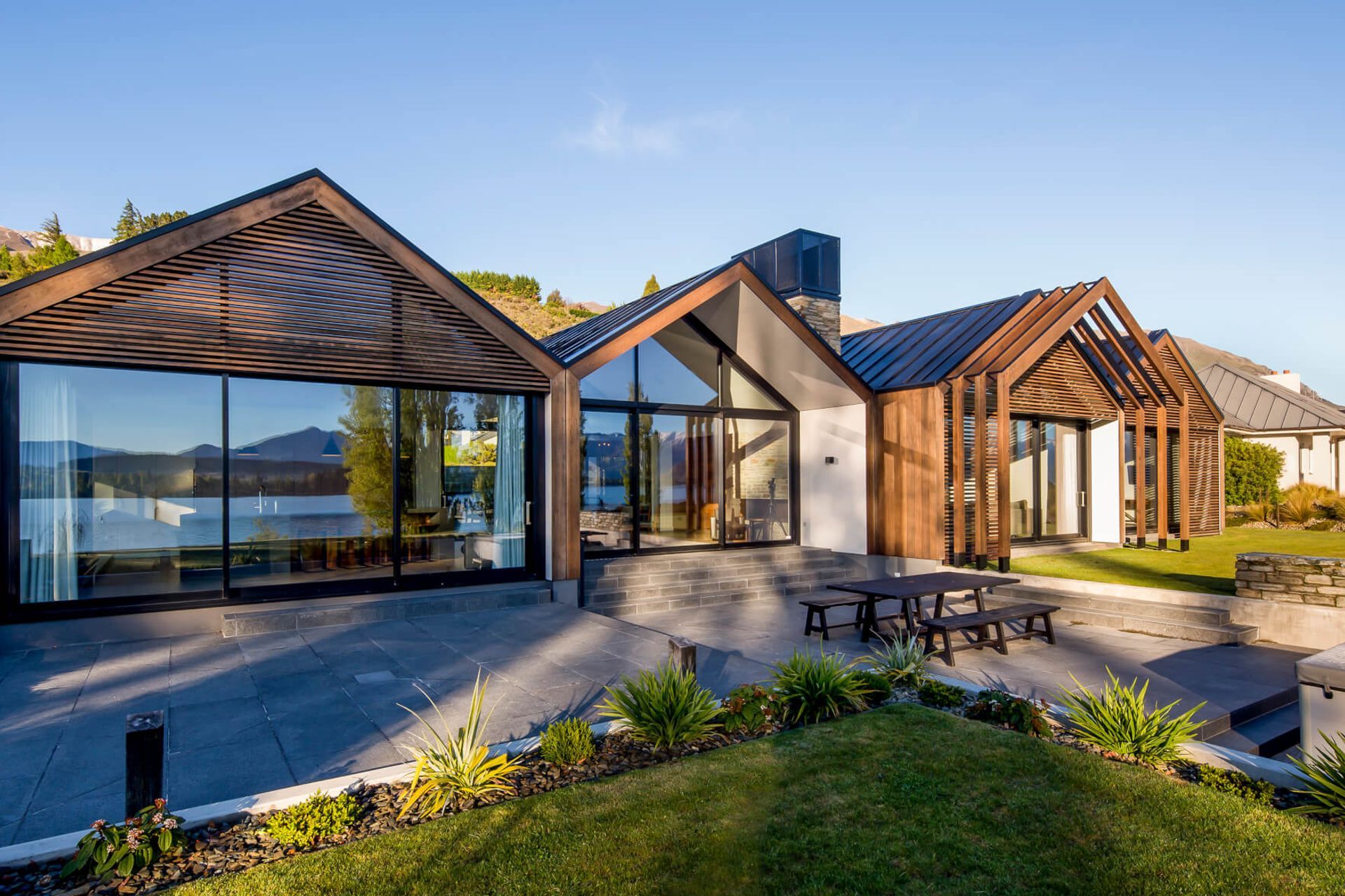 ArchiPro Project Summary - Contemporary Alpine Garden featuring hardy native plantings for a low-maintenance, relaxed environment, harmonizing with the architectural style of the stunning holiday home.