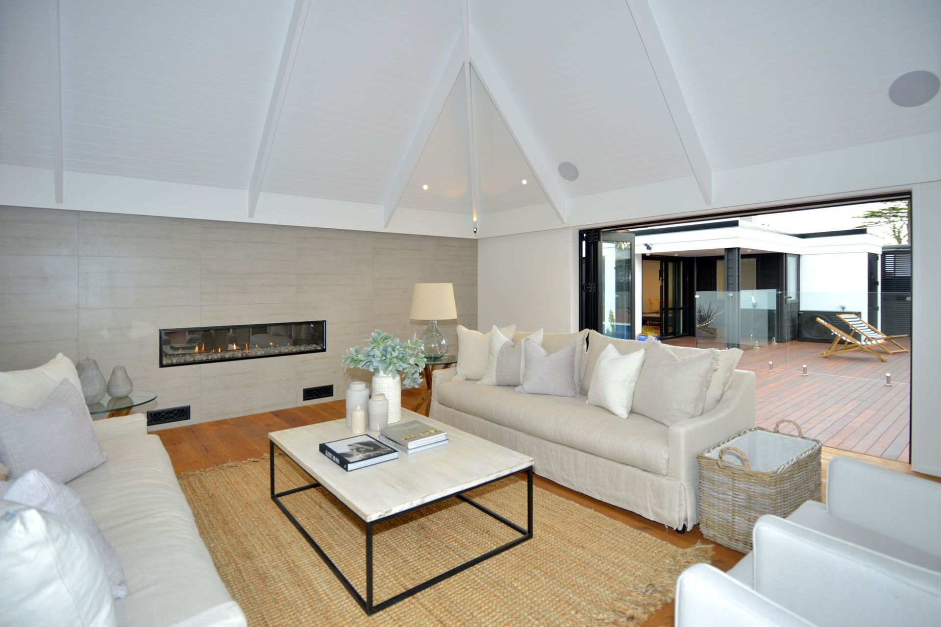 ArchiPro Project Summary - A stunning residence featuring over 460 handcrafted timber rafters, a sweeping Rimu staircase, and an expansive open-plan living area designed for year-round enjoyment with a heated pool, barbeque/fire pit, and versatile seating arrangements.