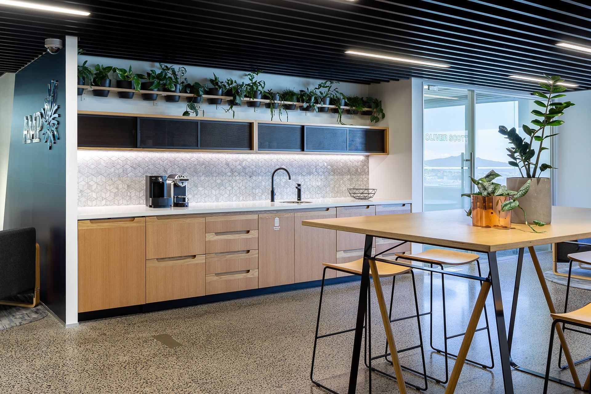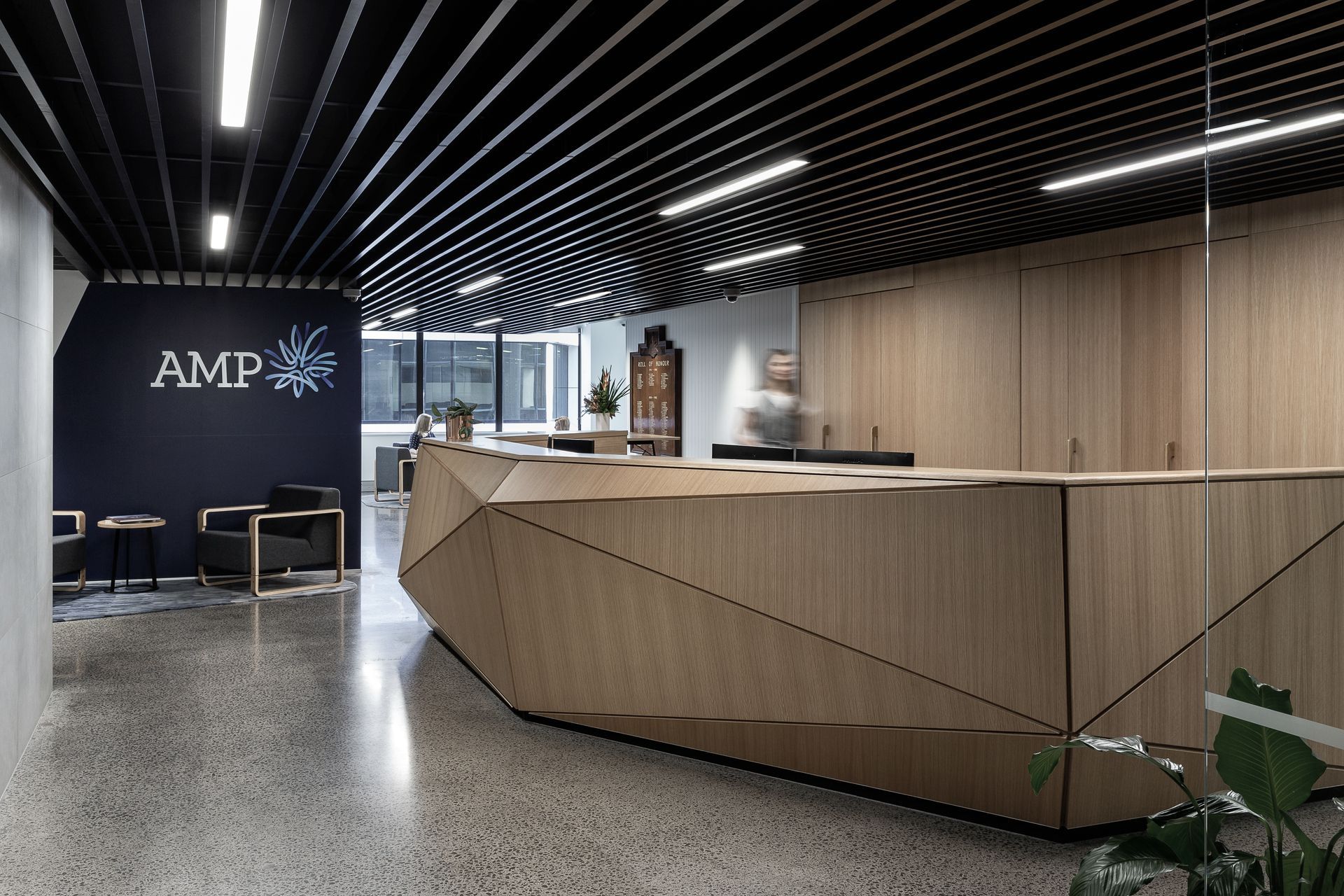 ArchiPro Project Summary - The AMP Level 21 & Reception project features modern architecture with elegant design elements, creating a welcoming environment for all.