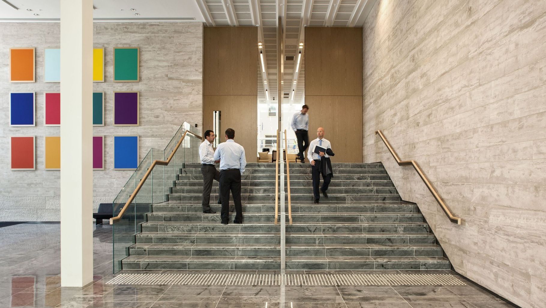 ArchiPro Project Summary - ANZ Tower features a stunning blend of natural stones, including Atlantic stone flooring and Ivory vein cut walls, designed to withstand heavy foot traffic while maintaining aesthetic appeal, as nominated by Warren & Mahoney Architects.