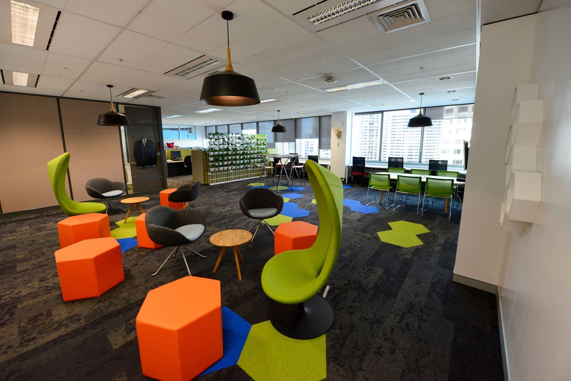 ArchiPro Project Summary - AON Insurance Sydney's innovative hub redefines collaboration with dedicated zones for teamwork and individual work, featuring custom furniture, integrated technology, and acoustic solutions to enhance productivity in a modern workspace.
