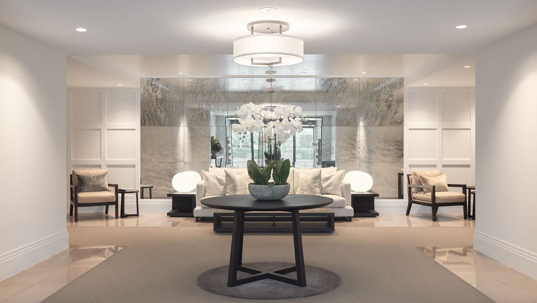 ArchiPro Project Summary - Refurbishment of an apartment lobby, blending modern elegance with timeless sophistication, featuring antique mirror installations that enhance natural light and complement the modern-classic exterior.