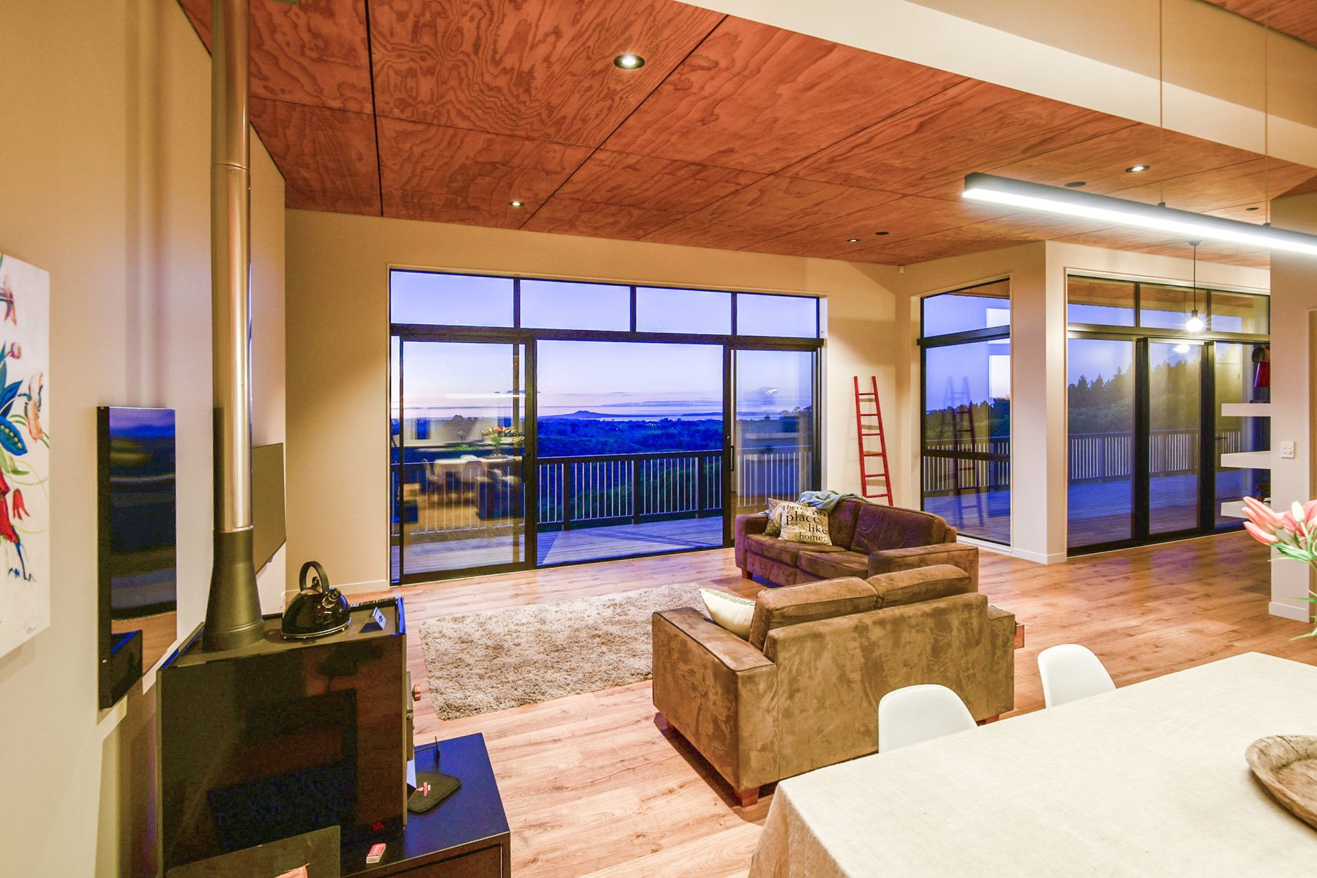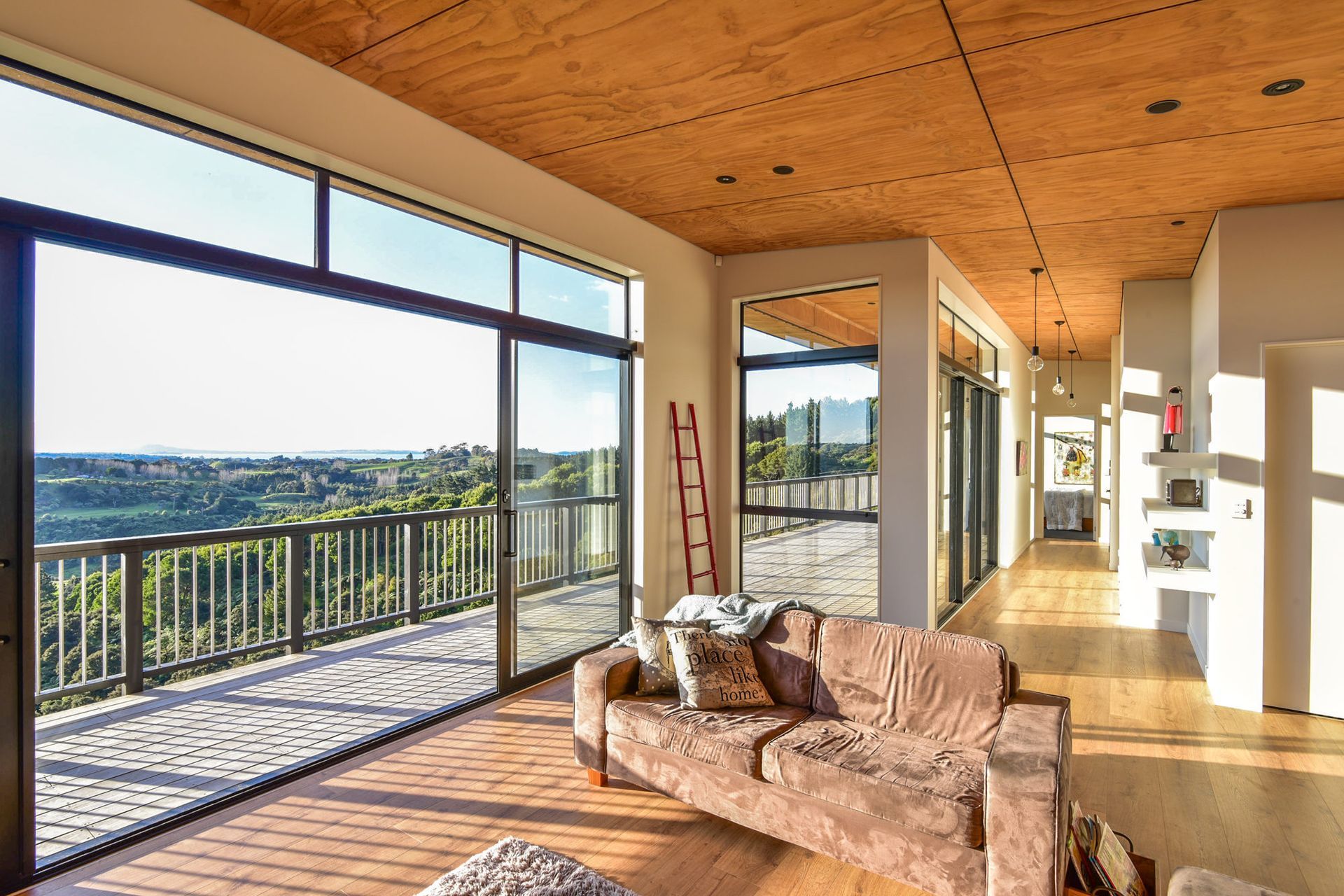 ArchiPro Project Summary - A stunning 5-bedroom home in Brookby, designed by Franklin Architectural Design and built by G Donaldson Builders, featuring unobstructed north-facing views, a granny flat, and a striking full-length deck on a steep bank.