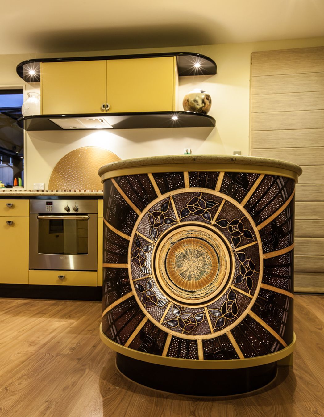 ArchiPro Project Summary - The Art Deco Kitchen features bold yellow accents, elegant cabinetry, and sleek countertops, creating a harmonious blend of style and functionality.