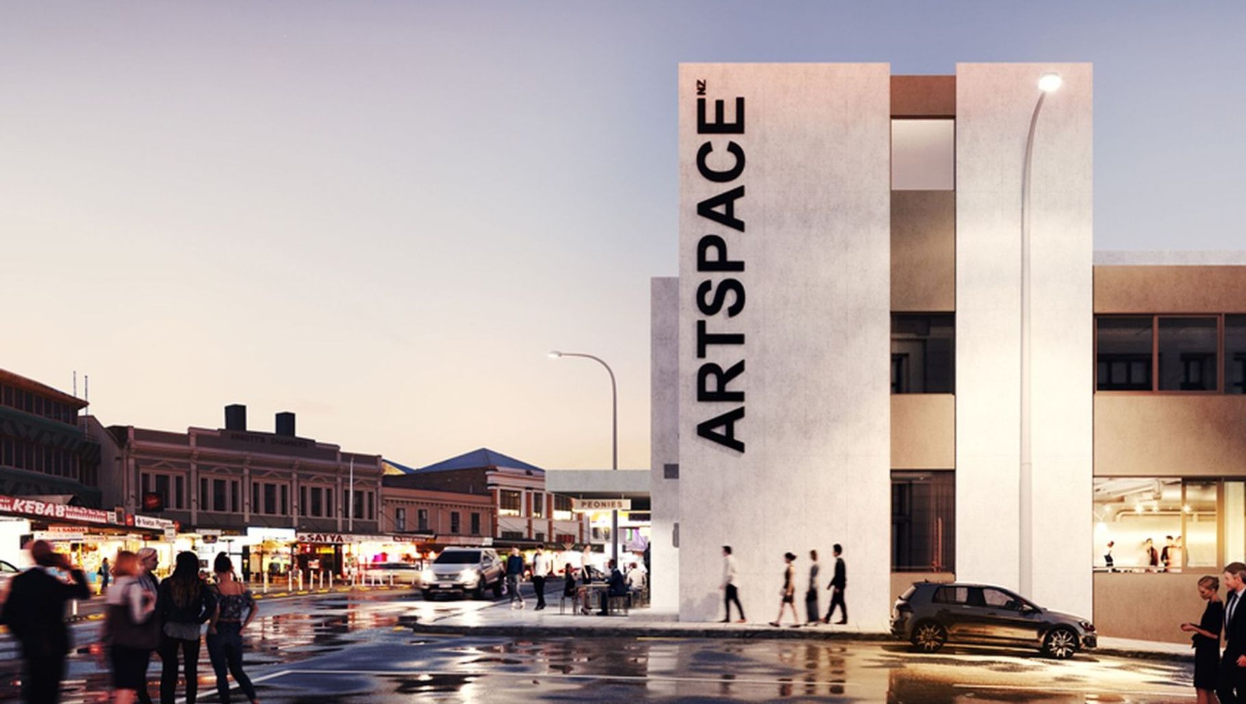 ArchiPro Project Summary - Artspace is a modern commercial building on Karangahape Road, designed as a corporate headquarters with innovative composite materials.
