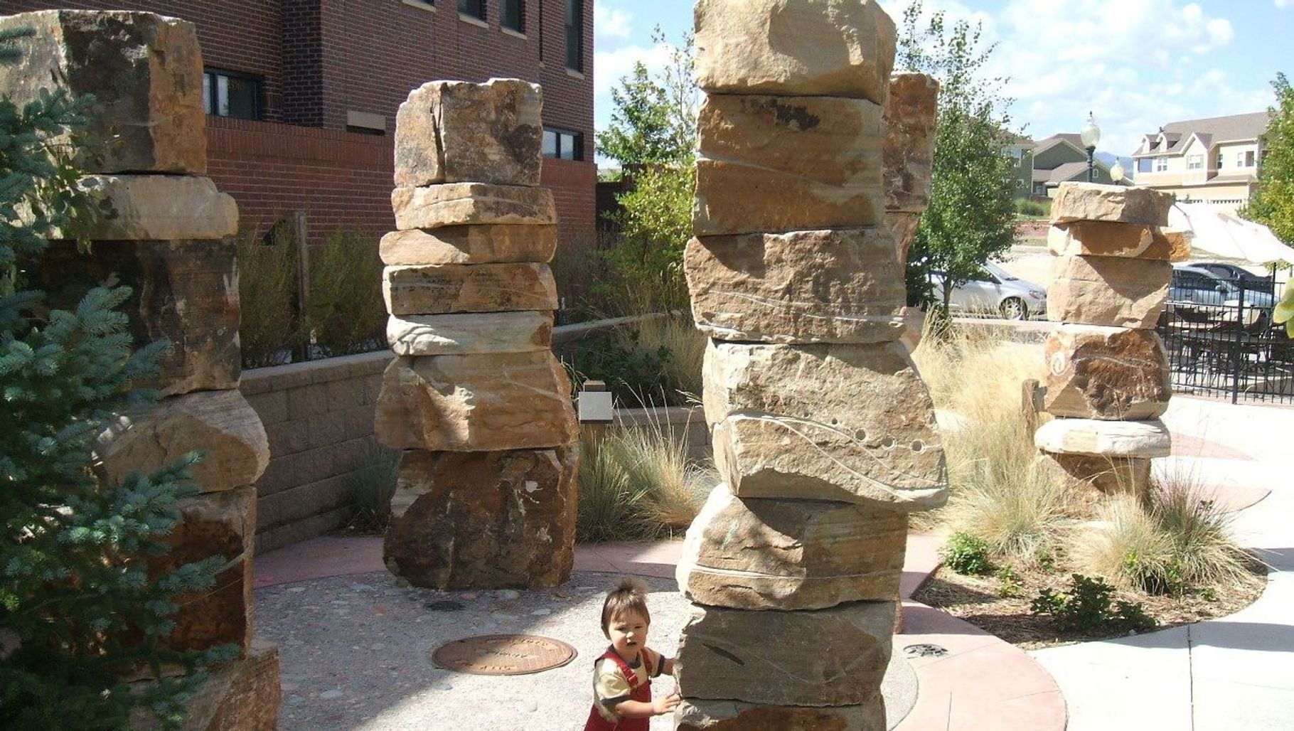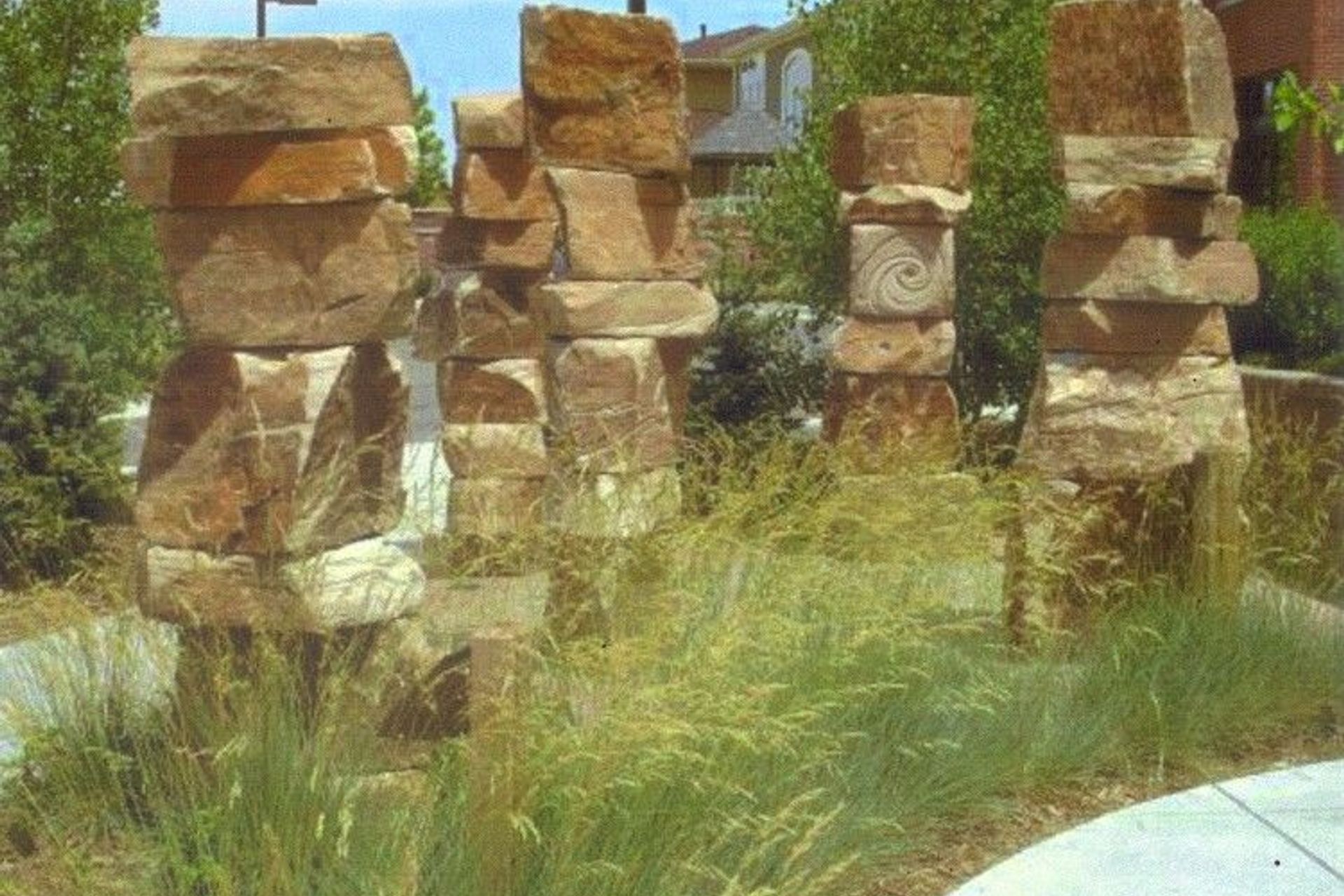 ArchiPro Project Summary - Innovative pedestrian accessway in Arvada, Colorado, inspired by regional geological formations, featuring hand-carved stone facets that enhance views while providing a unique spatial experience, designed by Nuszer Kopatz Urban Design Associates and built by Artscapes LLC.