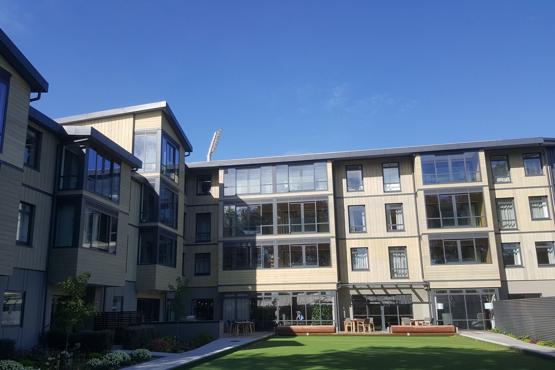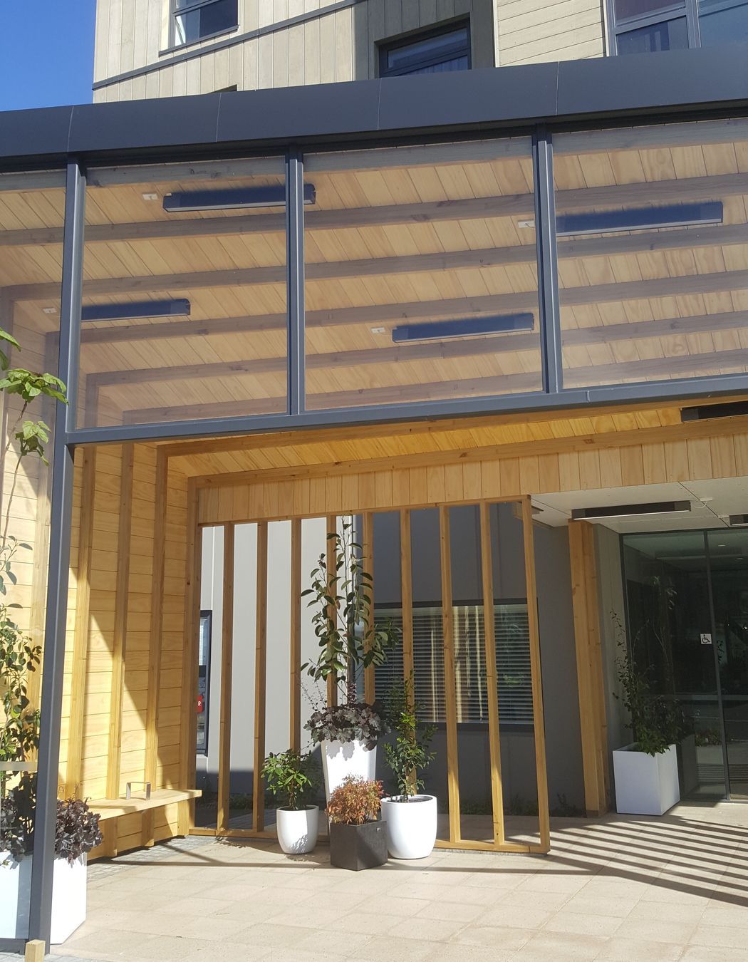 ArchiPro Project Summary - Arvida Parklane Retirement Village features durable Accoya weatherboards, combining Vertical Shiplap and Rusticated styles, coated with WoodX Oil Colour Shale to emulate weathered grey, ensuring longevity with a 50-year above ground and 25-year below ground warranty.