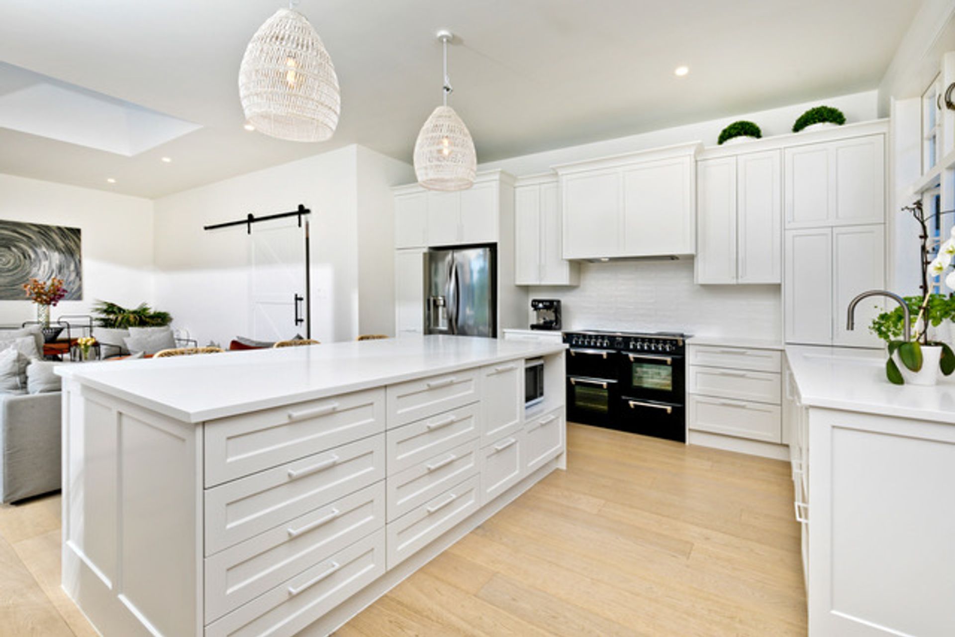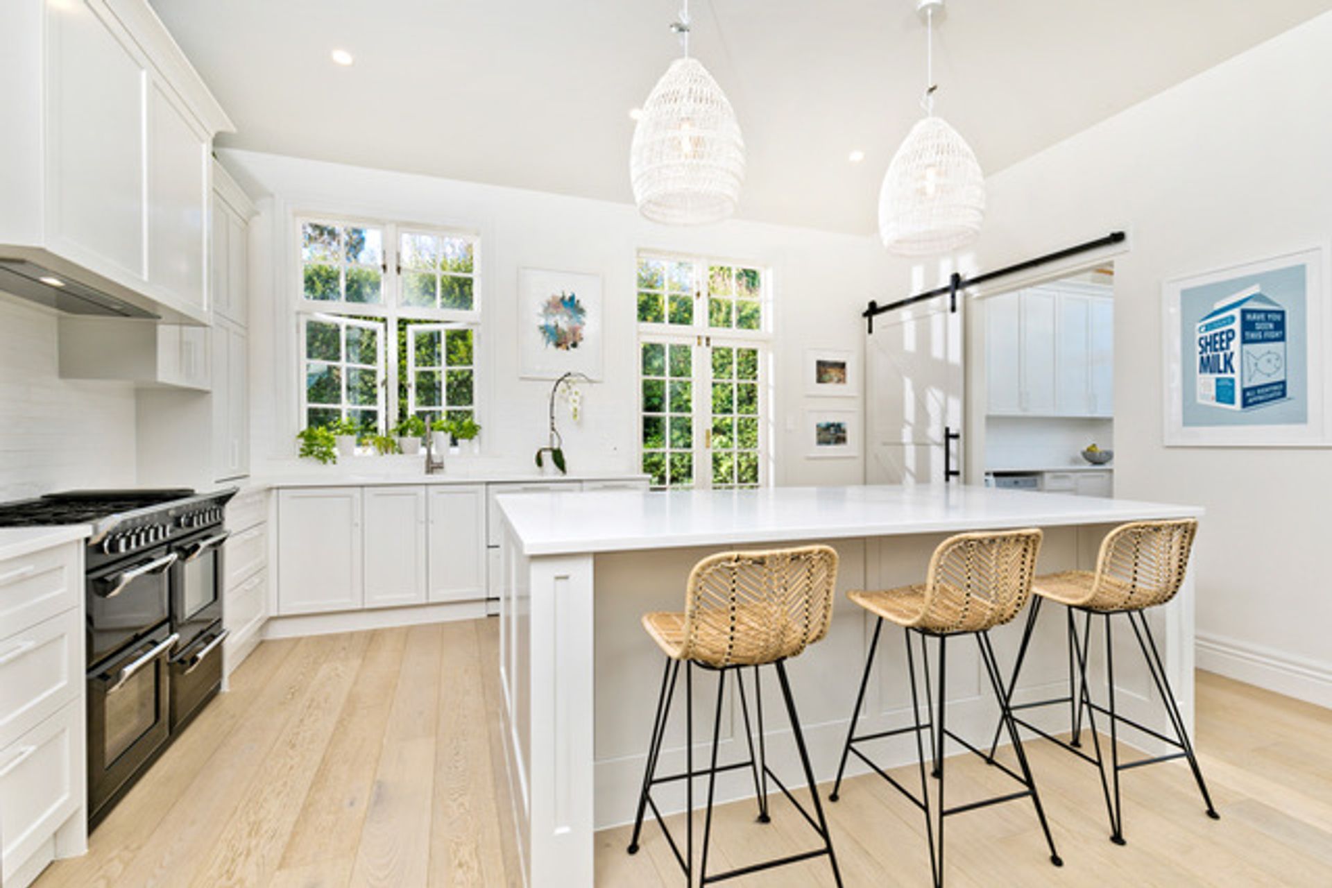 ArchiPro Project Summary - A seamless blend of modern functionality and 1920s charm in a renovated villa, featuring a scullery and barn doors, expertly crafted despite challenges of uneven floors and walls within a tight timeframe.