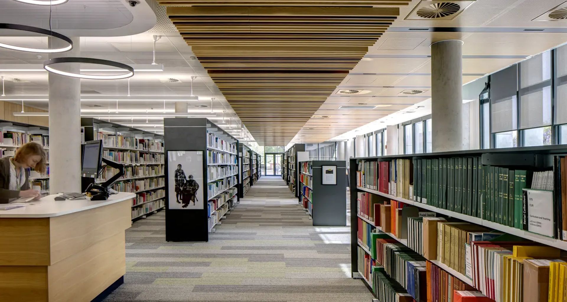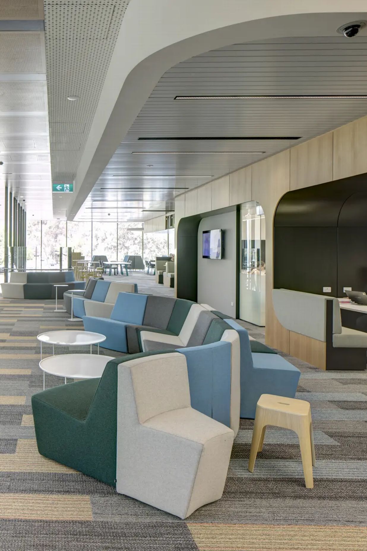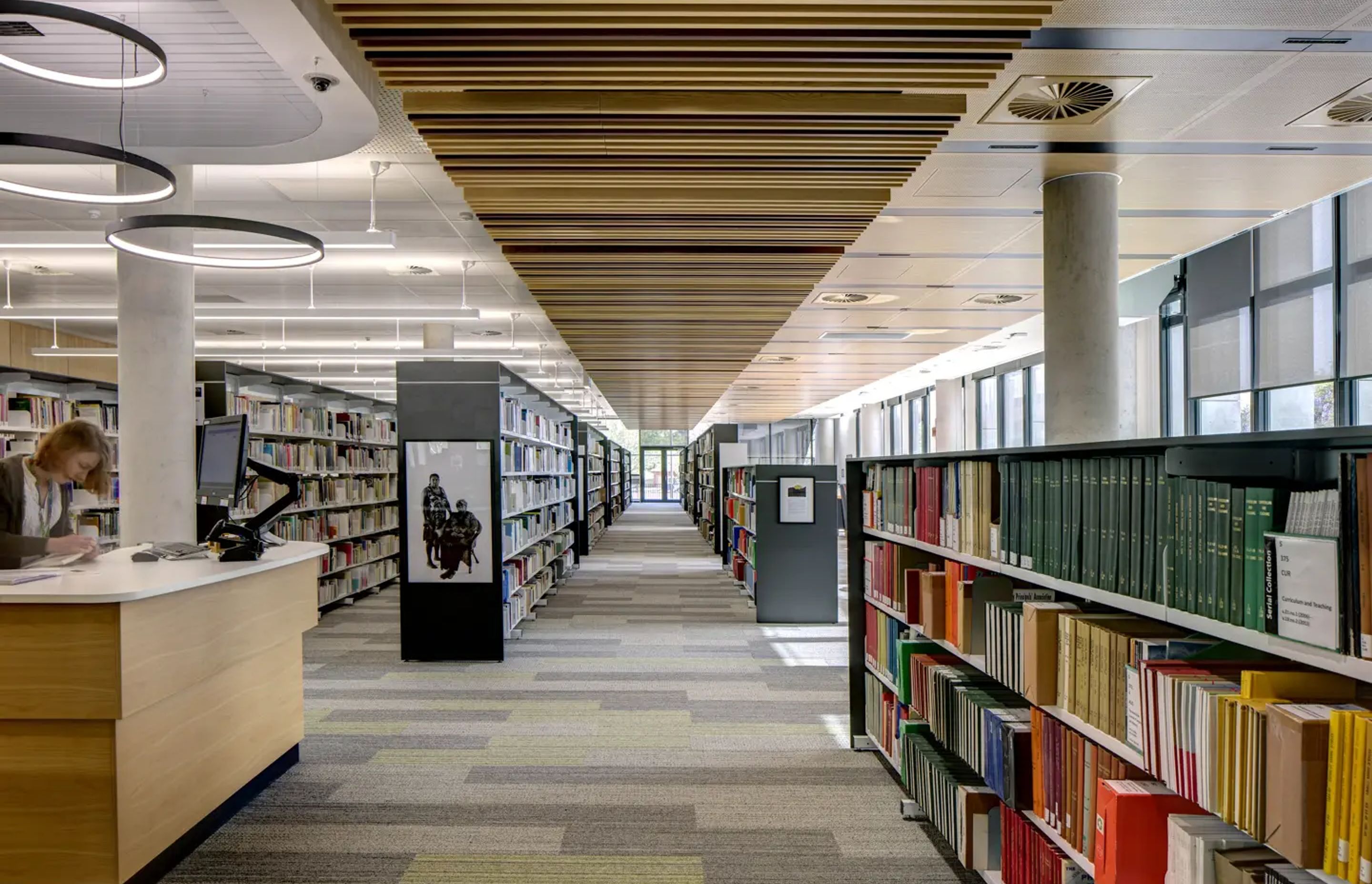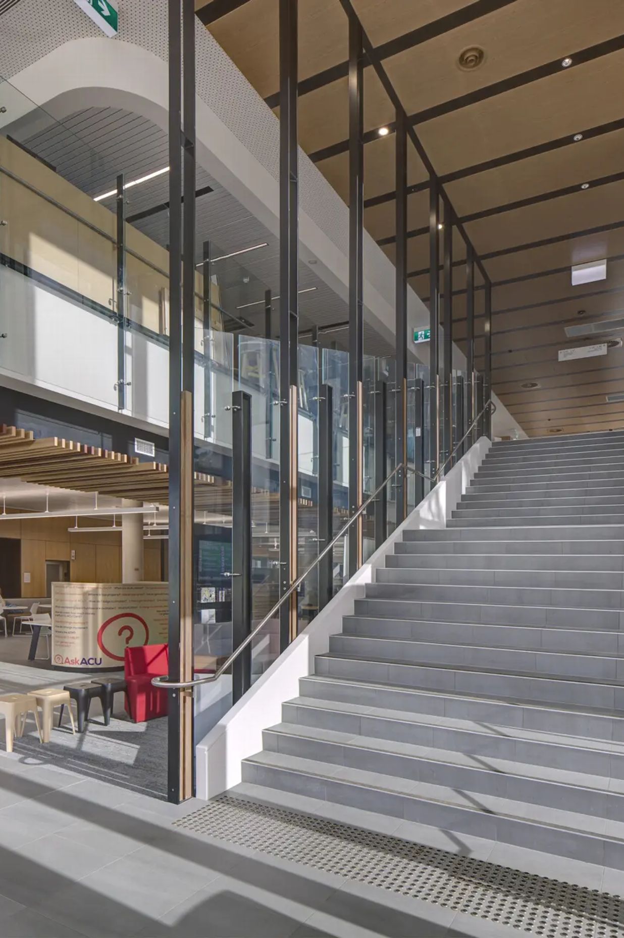 ArchiPro Project Summary - The Veritas Building at Australian Catholic University features a dynamic library space with collaborative study areas, a Student Common, and ample natural light, all designed to enhance the academic experience on the Canberra campus.