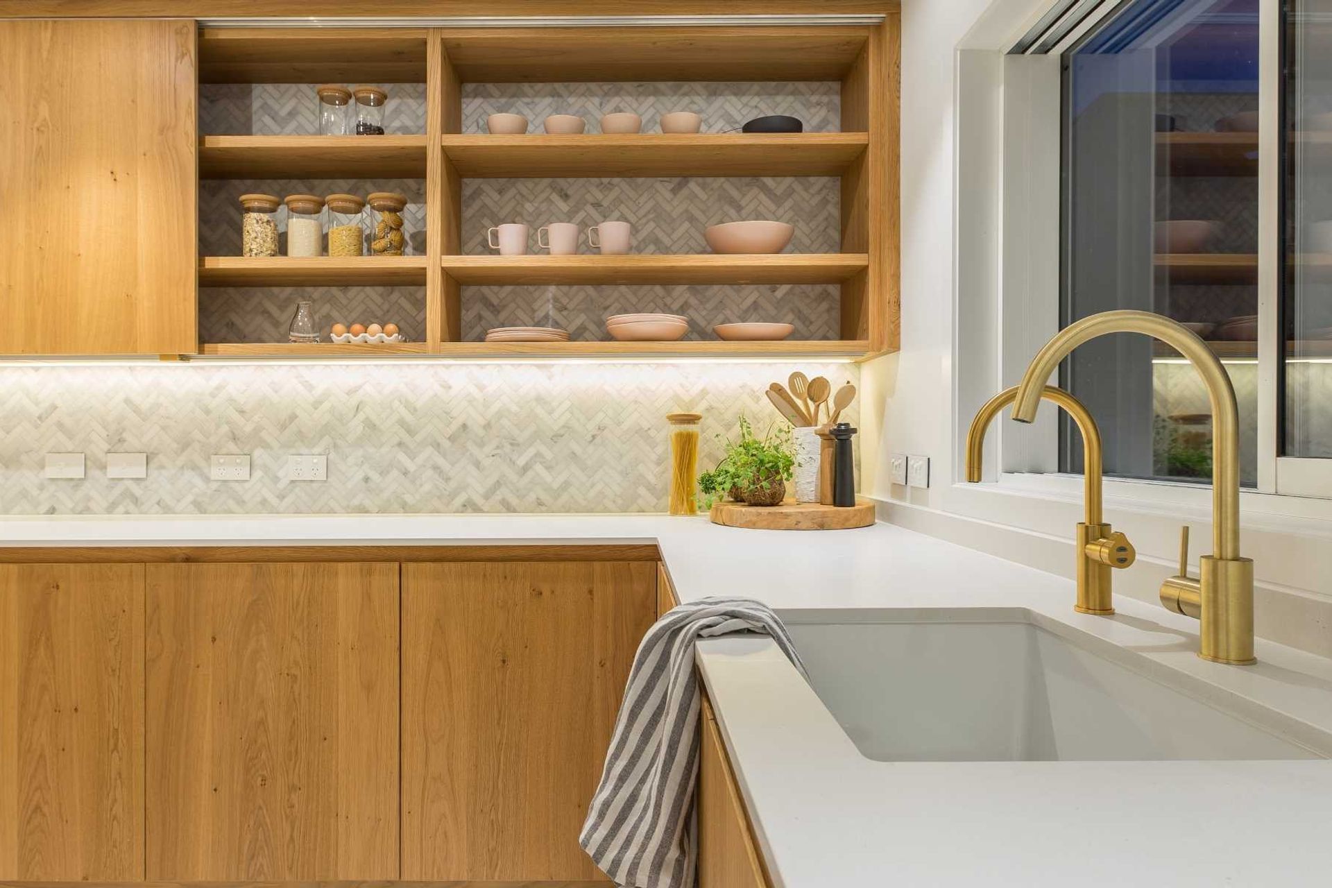 Benchtop surfaces include low silica composite stone, solid acrylic and high-pressure laminate while its Mercer sinks and taps range includes options in stainless steel, PVD and granite.