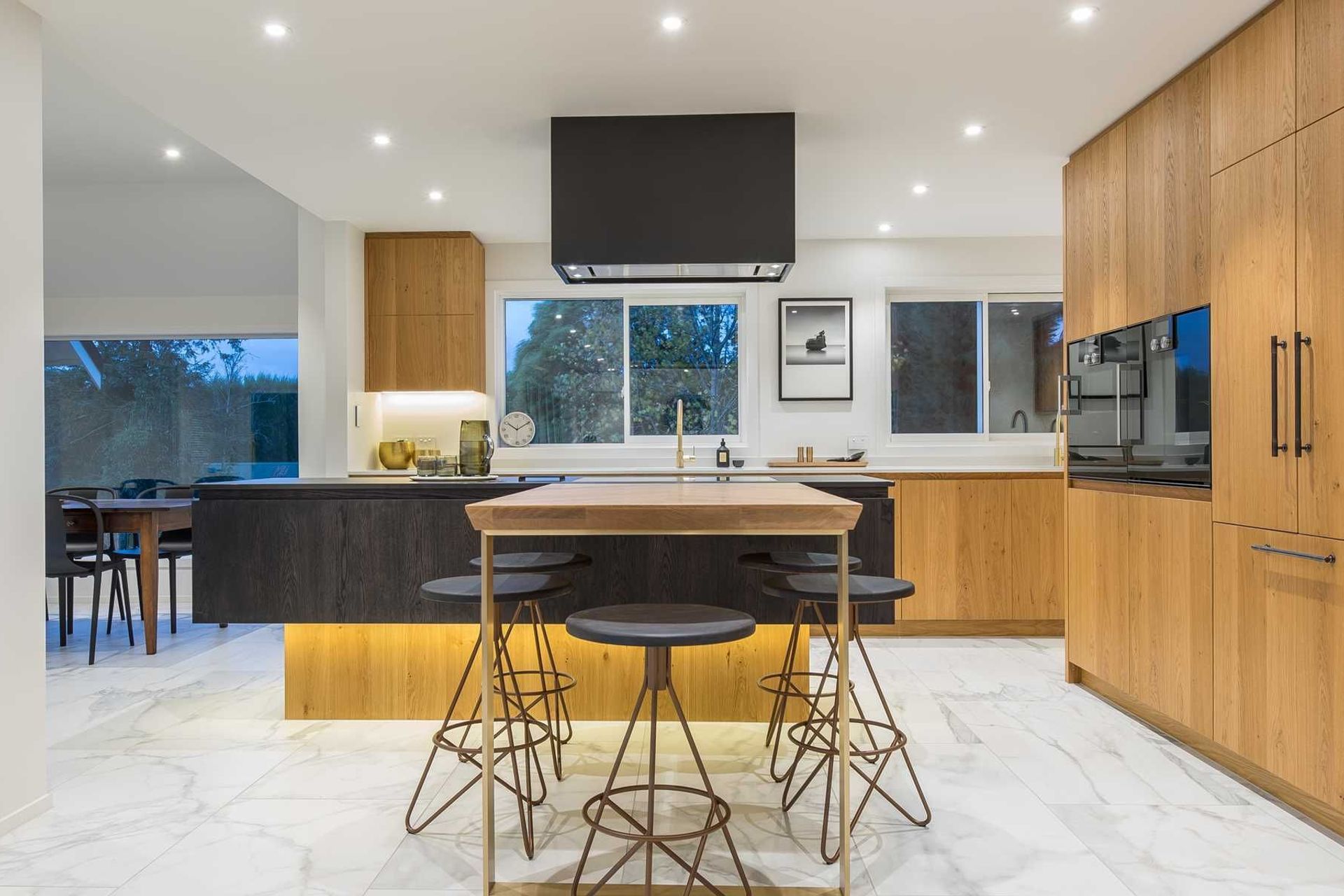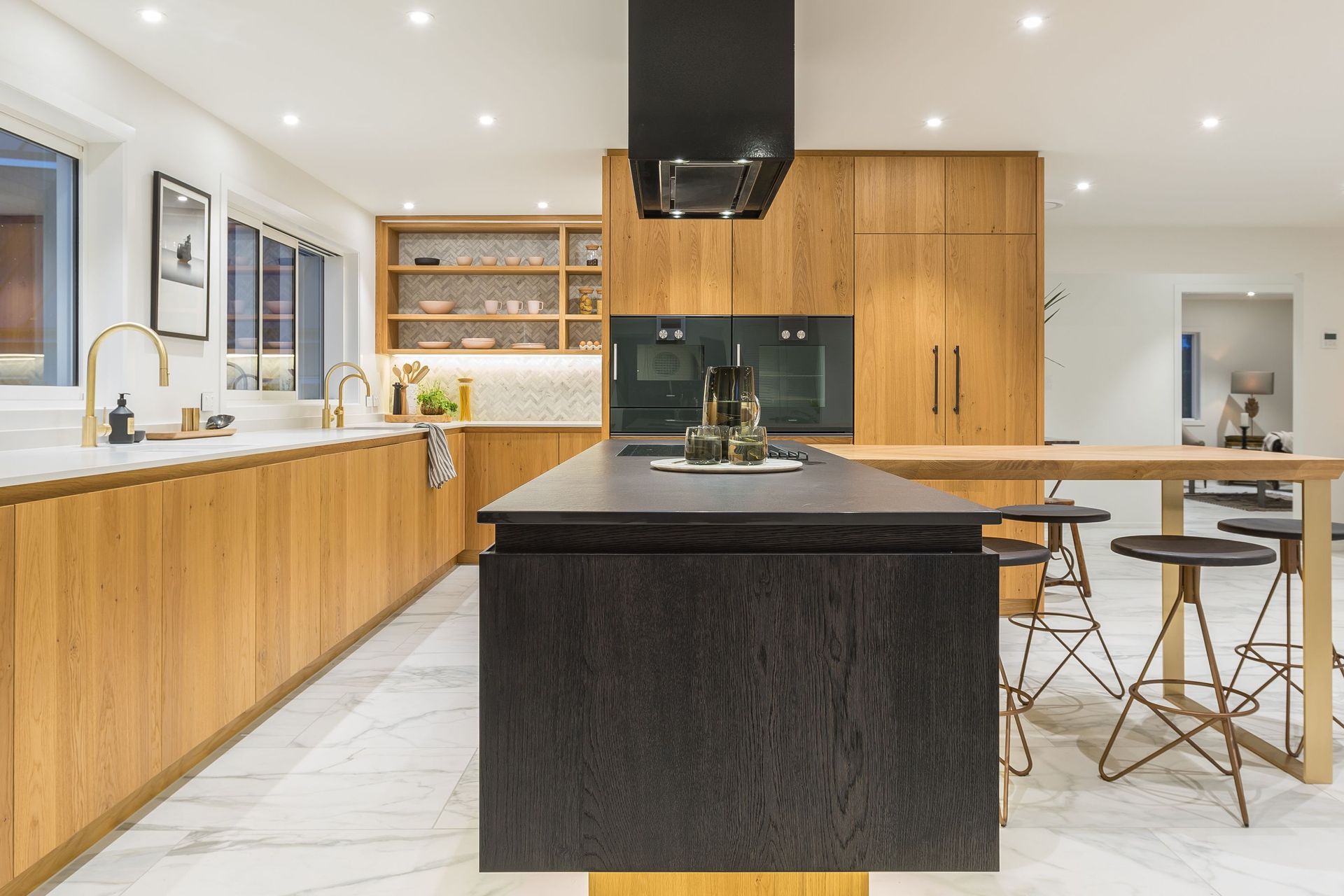 ArchiPro Project Summary - Award-winning kitchen featuring a harmonious blend of American Oak cabinetry, contrasting materials, and innovative design elements that enhance both functionality and aesthetics.
