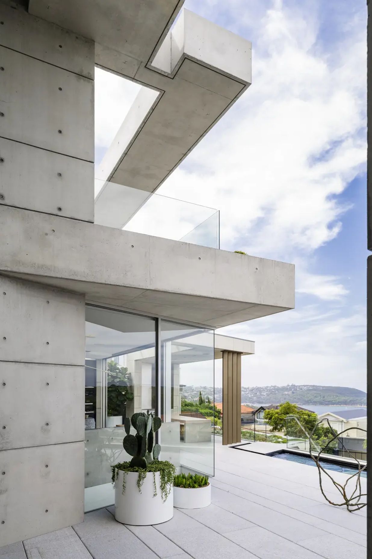 ArchiPro Project Summary - Balmoral House features open living spaces with panoramic views of Sydney Harbour, designed with durable masonry and enhanced privacy, showcasing a hand-shaped granite kitchen island and elegant finishes by SAOTA and Alexandra Kidd.