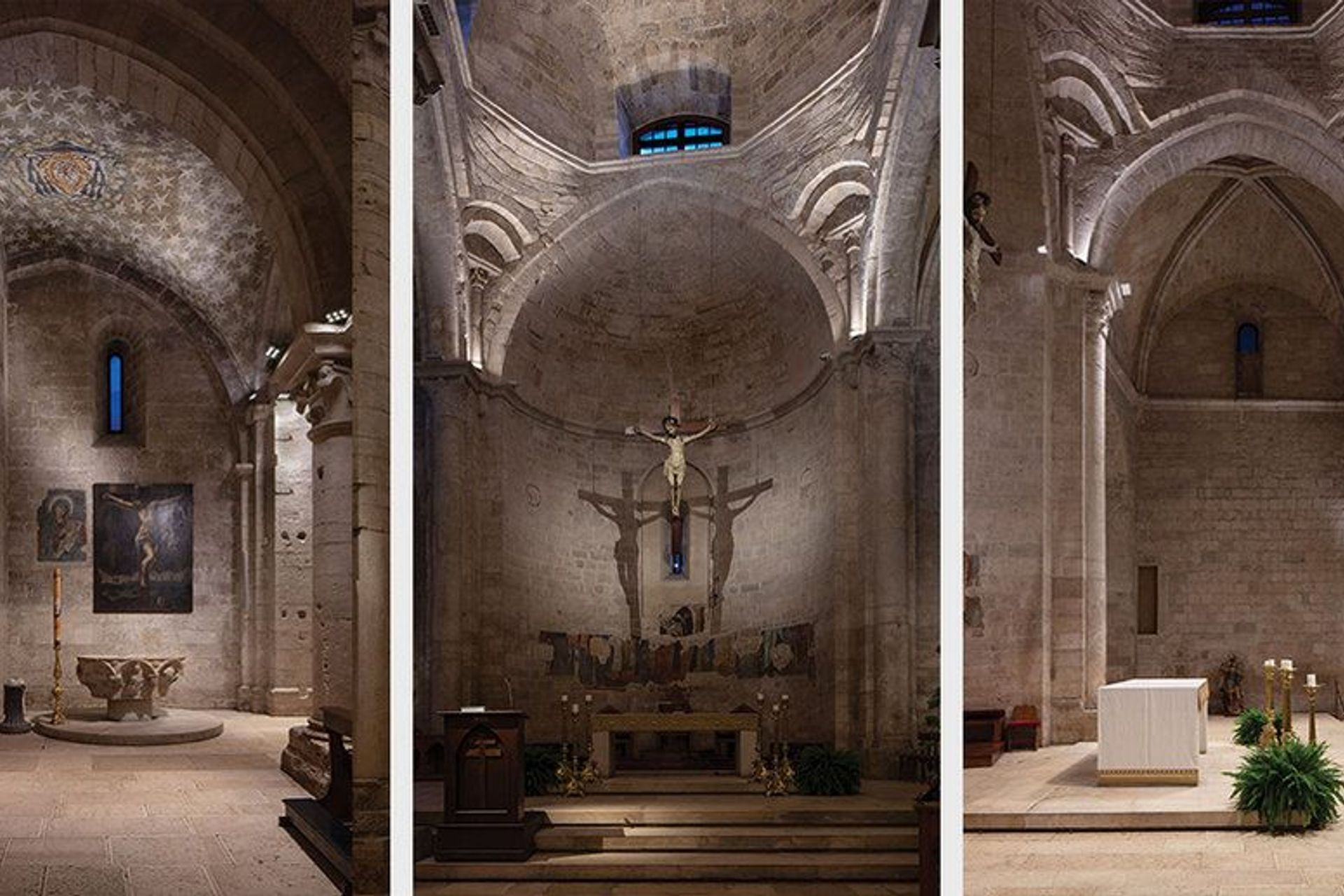 ArchiPro Project Summary - The Basilica of the Holy Sepulchre in Barletta, Apulia, showcases a rich history of architectural evolution since the 11th century, featuring a recent lighting project that enhances its stunning frescoes and significant elements, including the presbytery's crucifix and altar.