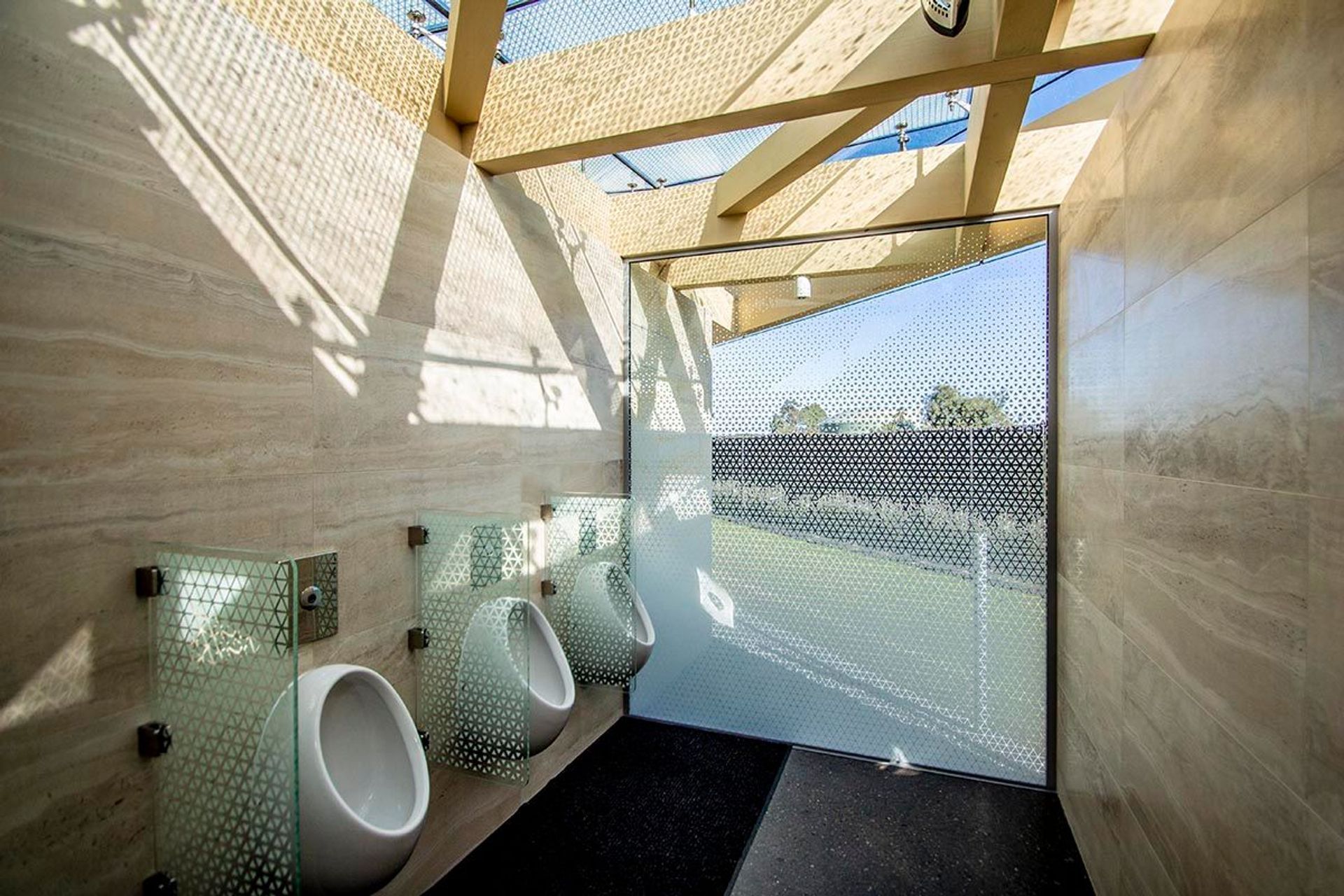 ArchiPro Project Summary - A modern bathroom pavilion designed to enhance visitor experience at Farmers’ Corner, featuring private cubicles with stunning views and a unique open-air breezeway, completed in 2019.