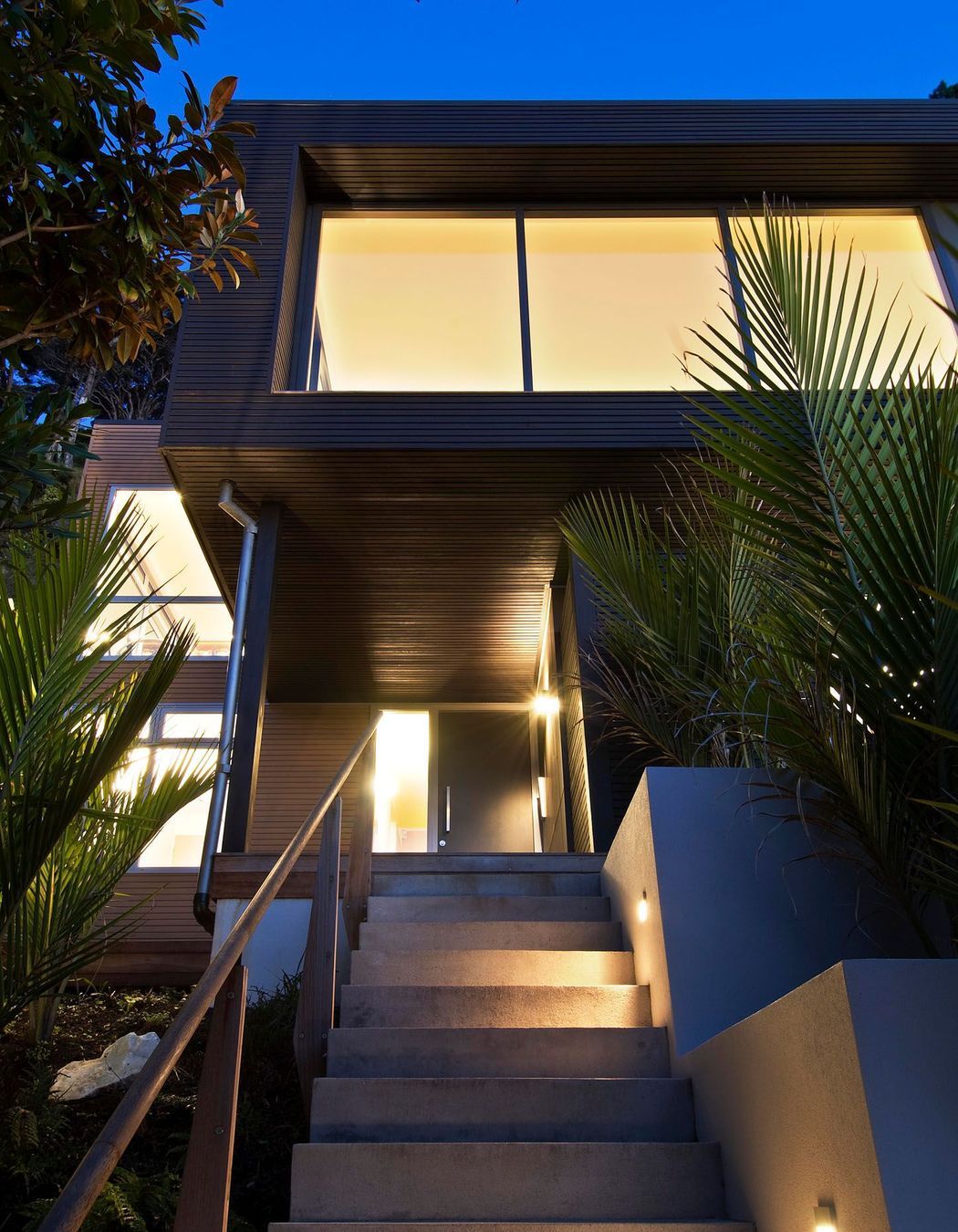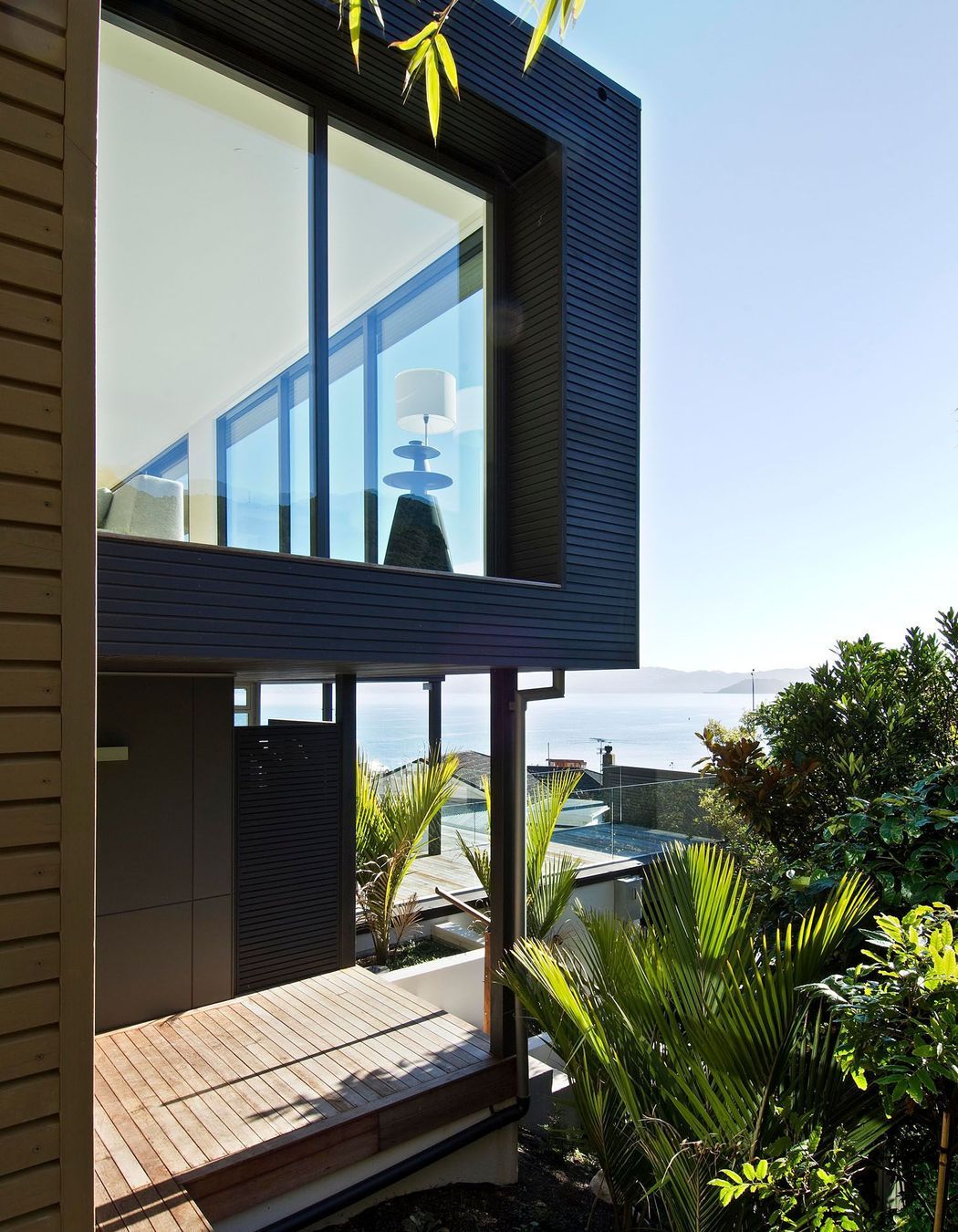 ArchiPro Project Summary - Family home in Days Bay harmonizing contemporary New Zealand architecture with the natural landscape, featuring interconnected living spaces, discrete bedroom areas, and a pool, all designed to enhance the experience of the stunning topography.