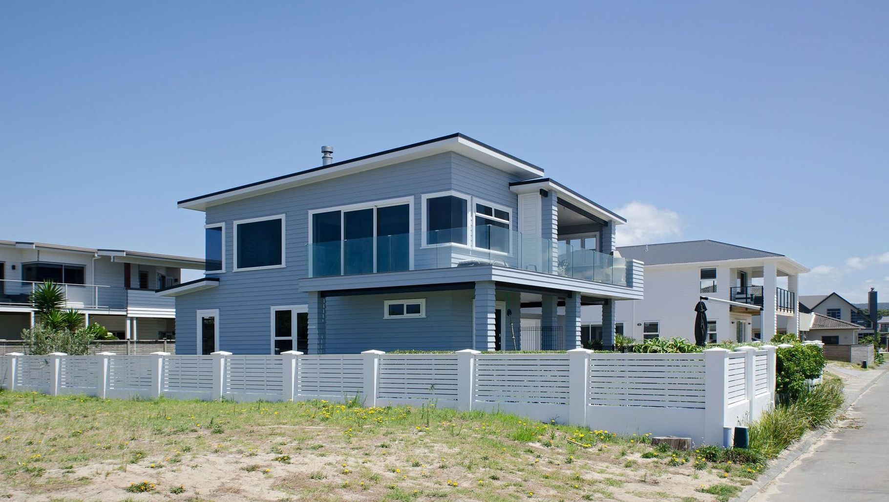 ArchiPro Project Summary - A contemporary waterfront luxury beach house at Ruakaka Beach, Northland, expertly reclad by Cogan Custom Homes in 2016, featuring expansive outdoor living spaces and high-quality materials for an unparalleled coastal living experience.