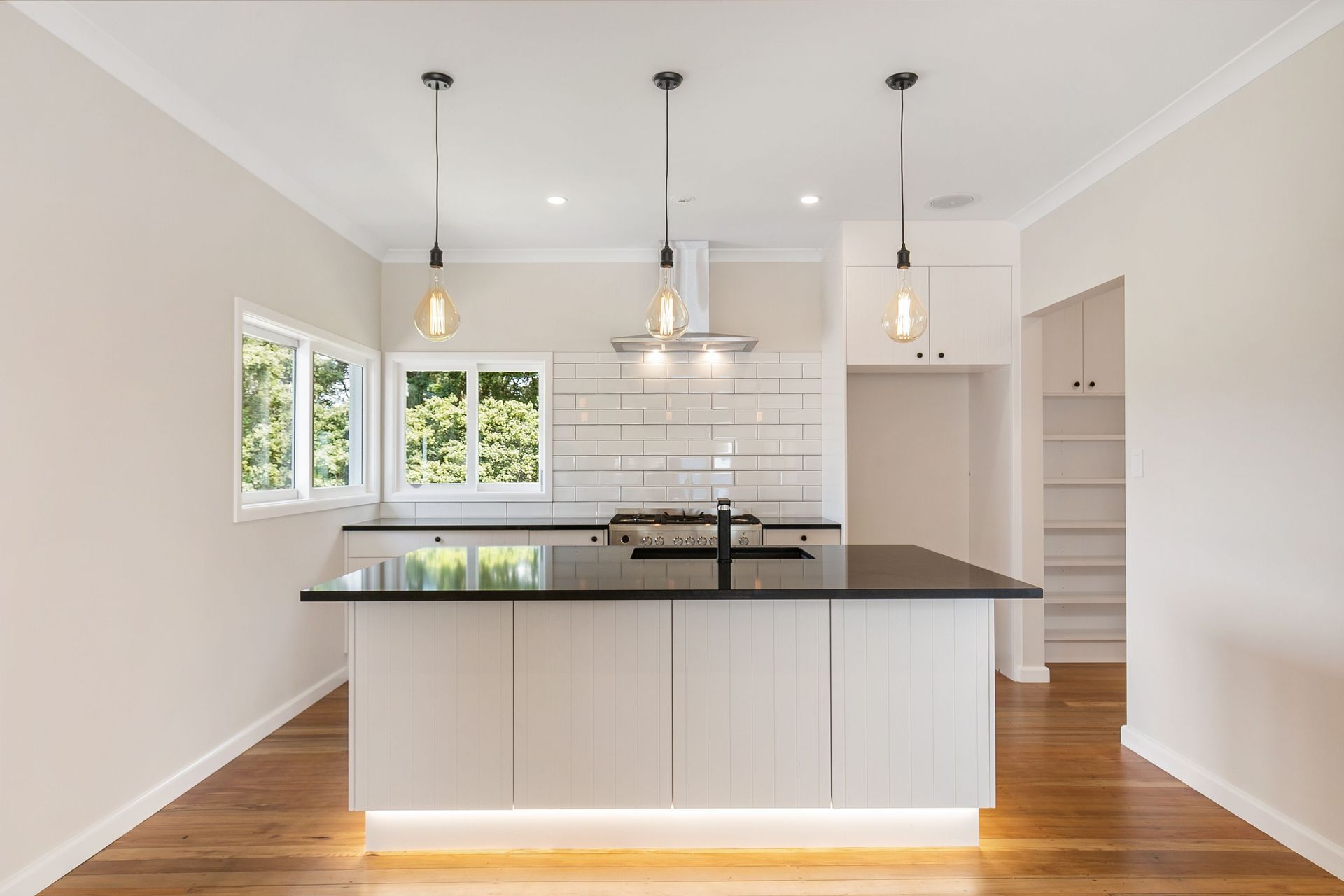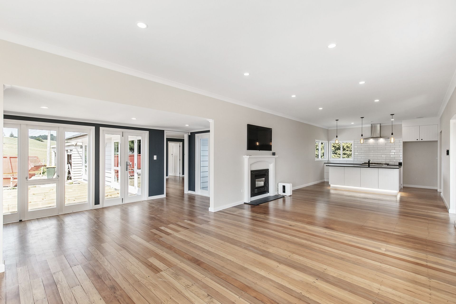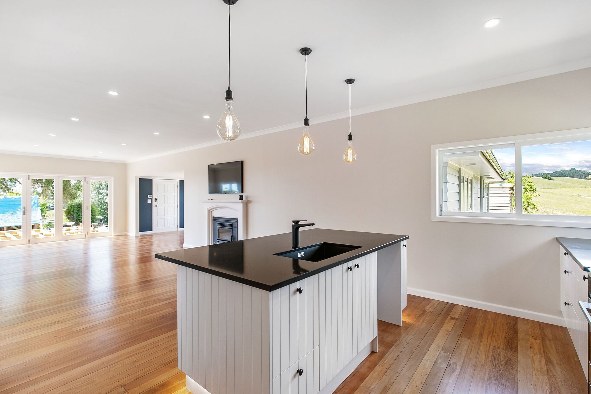 ArchiPro Project Summary - Beachlands Farm House: A $1.2m design and build project featuring a modern renovation of a 250 m2 farmhouse, complete with stunning views of Hauraki Gulf and Rangitoto, enhanced insulation, new Rimu flooring, and state-of-the-art home automation and entertainment systems.
