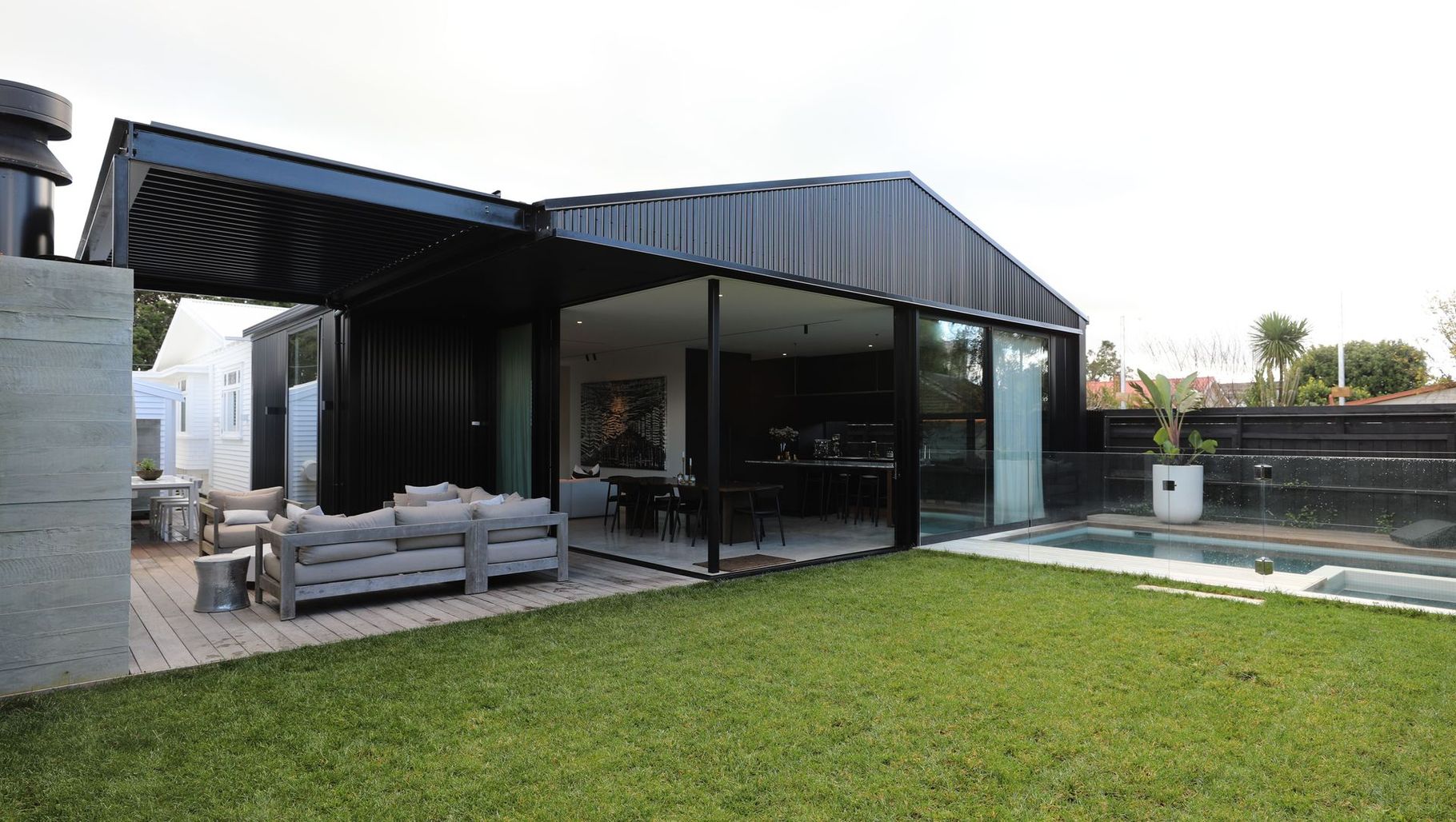 ArchiPro Project Summary - A stunning transformation of a 1920s bungalow into a contemporary beachside retreat featuring a new entertainment wing, glass corridor, and luxurious amenities, completed by Macfie Architecture in 2021.
