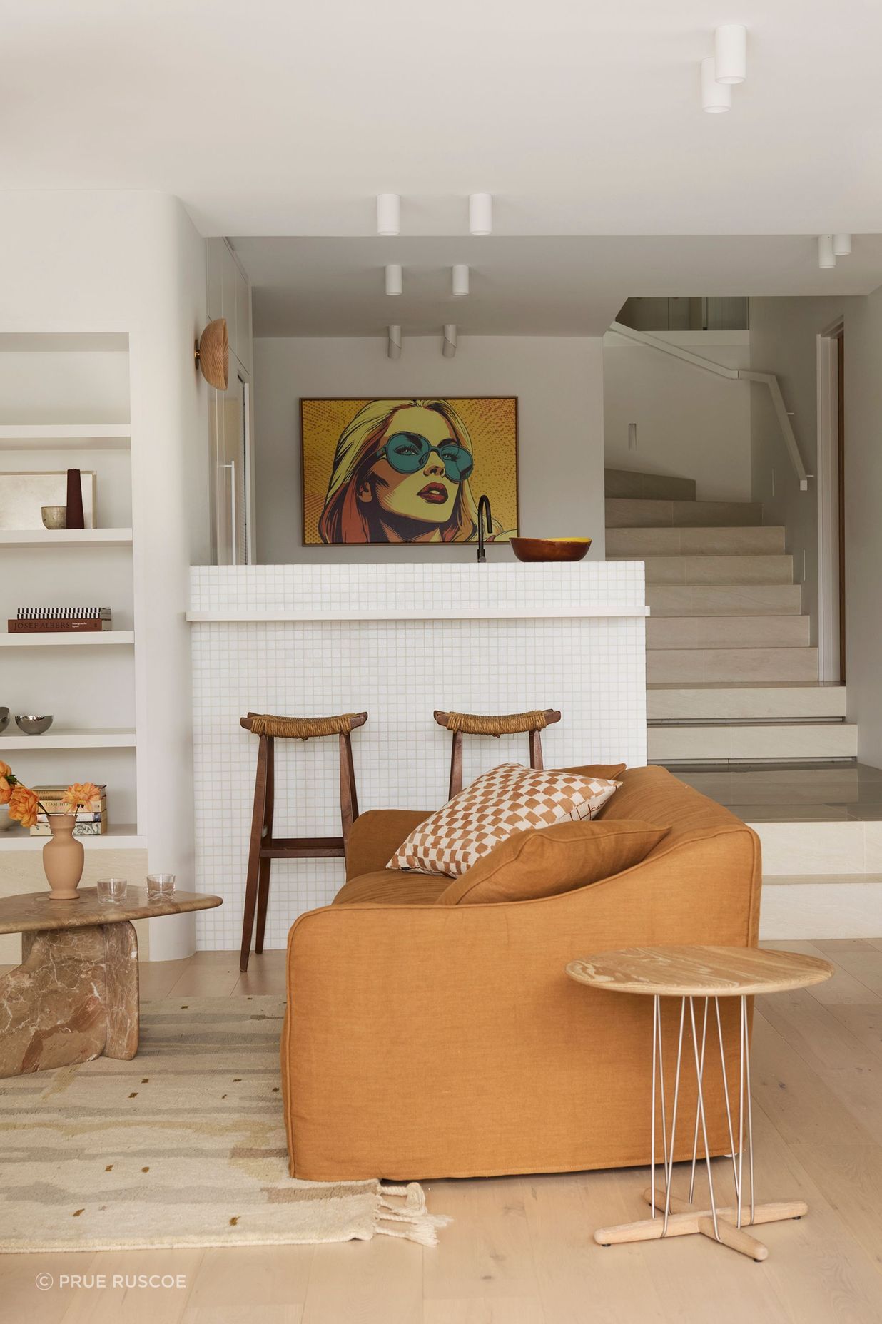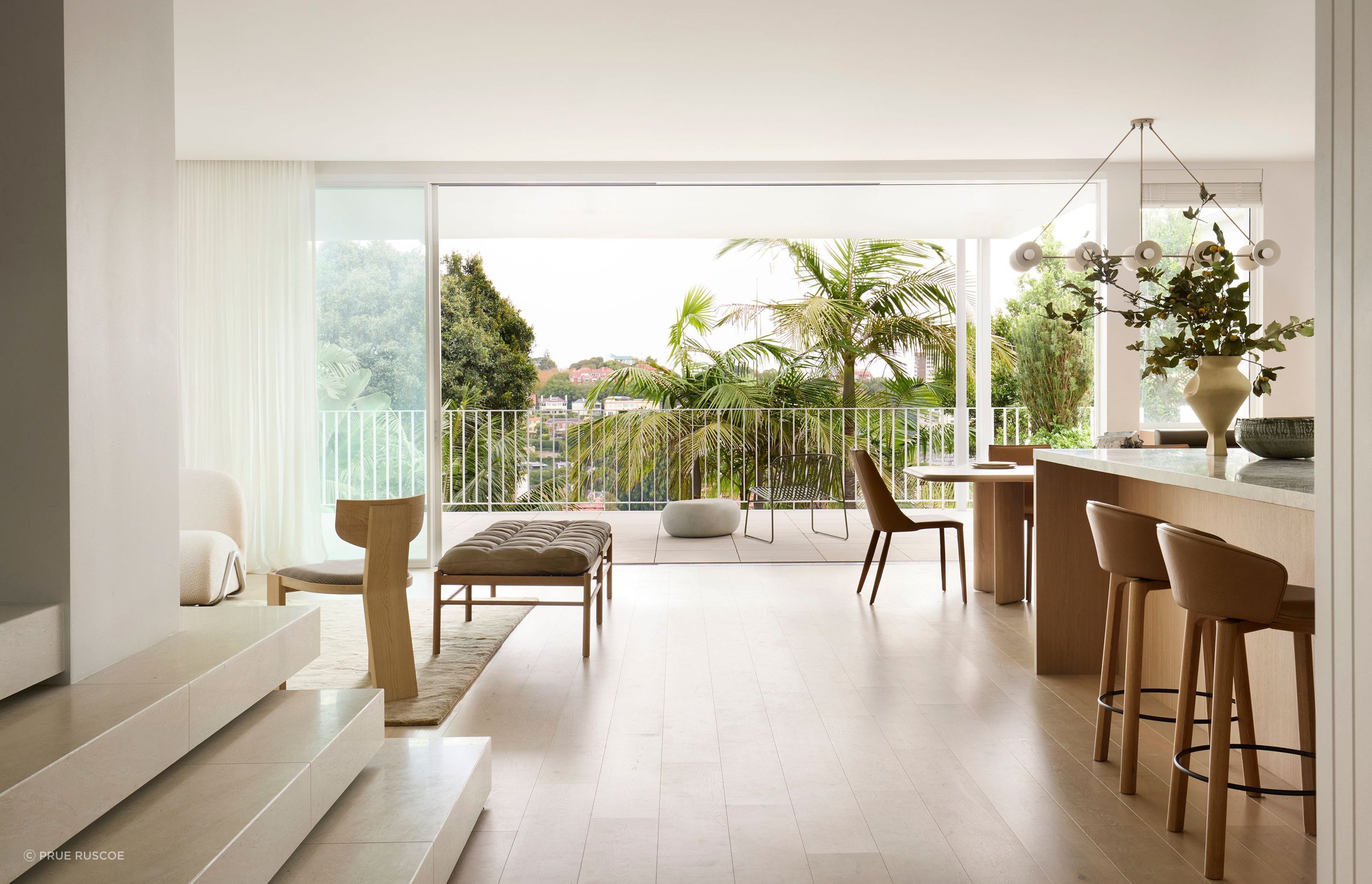 ArchiPro Project Summary - Bellevue Breeze reimagines a dark, compartmentalised home into a light-filled coastal retreat, blending indoor-outdoor living with a vibrant art collection and refined design elements for a joyful, elegant atmosphere.