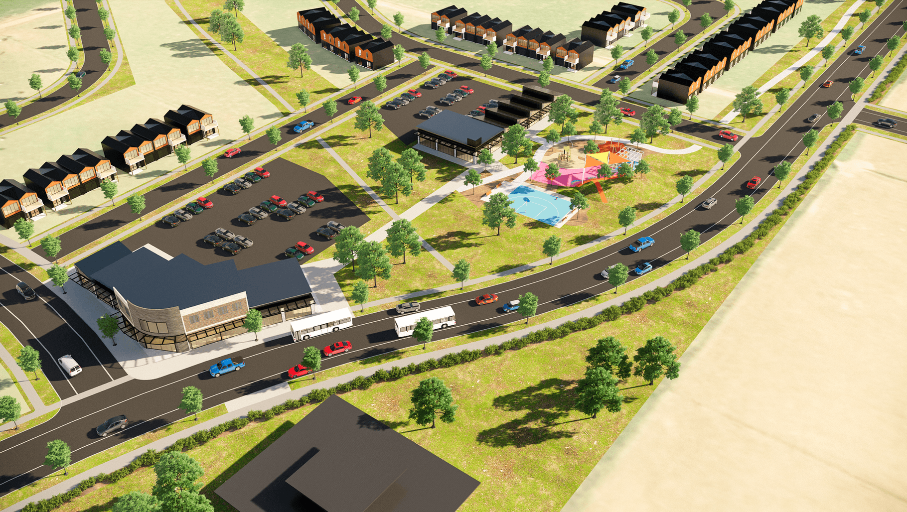 ArchiPro Project Summary - Comprehensive master planning for Bellgrove, featuring a playground and commercial area, designed in collaboration with the client.