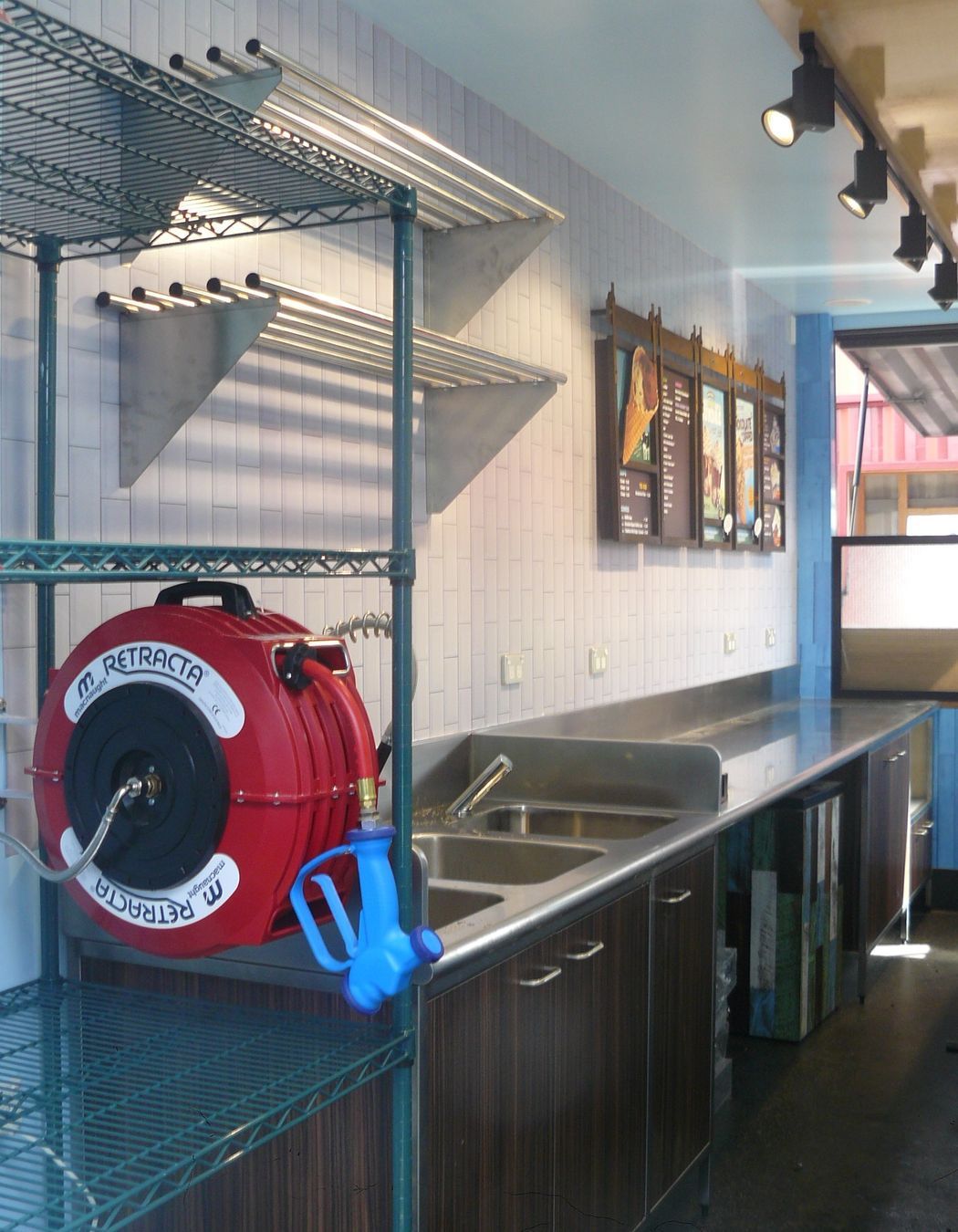 ArchiPro Project Summary - Transportable scoop shop for Ben & Jerry's, designed and constructed by IQ Container Homes, featuring fold-up sides, roll-out display, and custom cabinetry for a unique mobile ice cream experience.