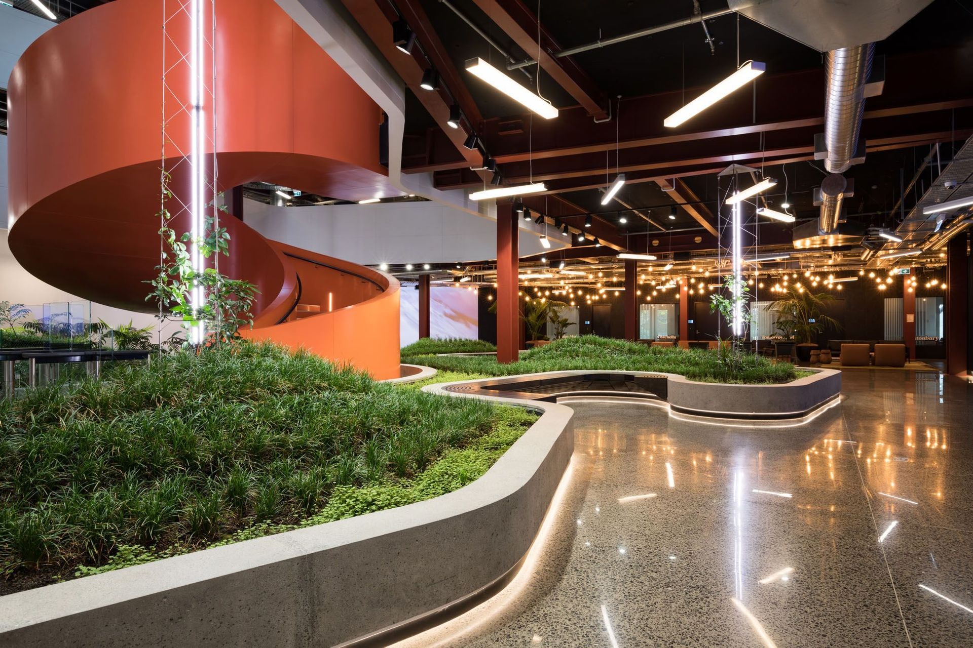 ArchiPro Project Summary - B:Hive Smales Farm Park features flexible office spaces across multiple levels, accommodating businesses of all sizes, complemented by state-of-the-art meeting and event facilities that foster innovation and collaboration.