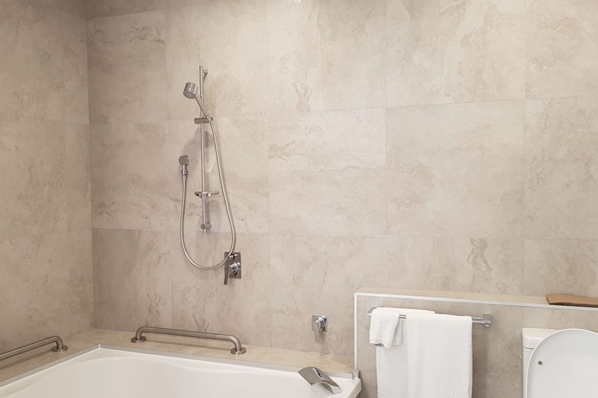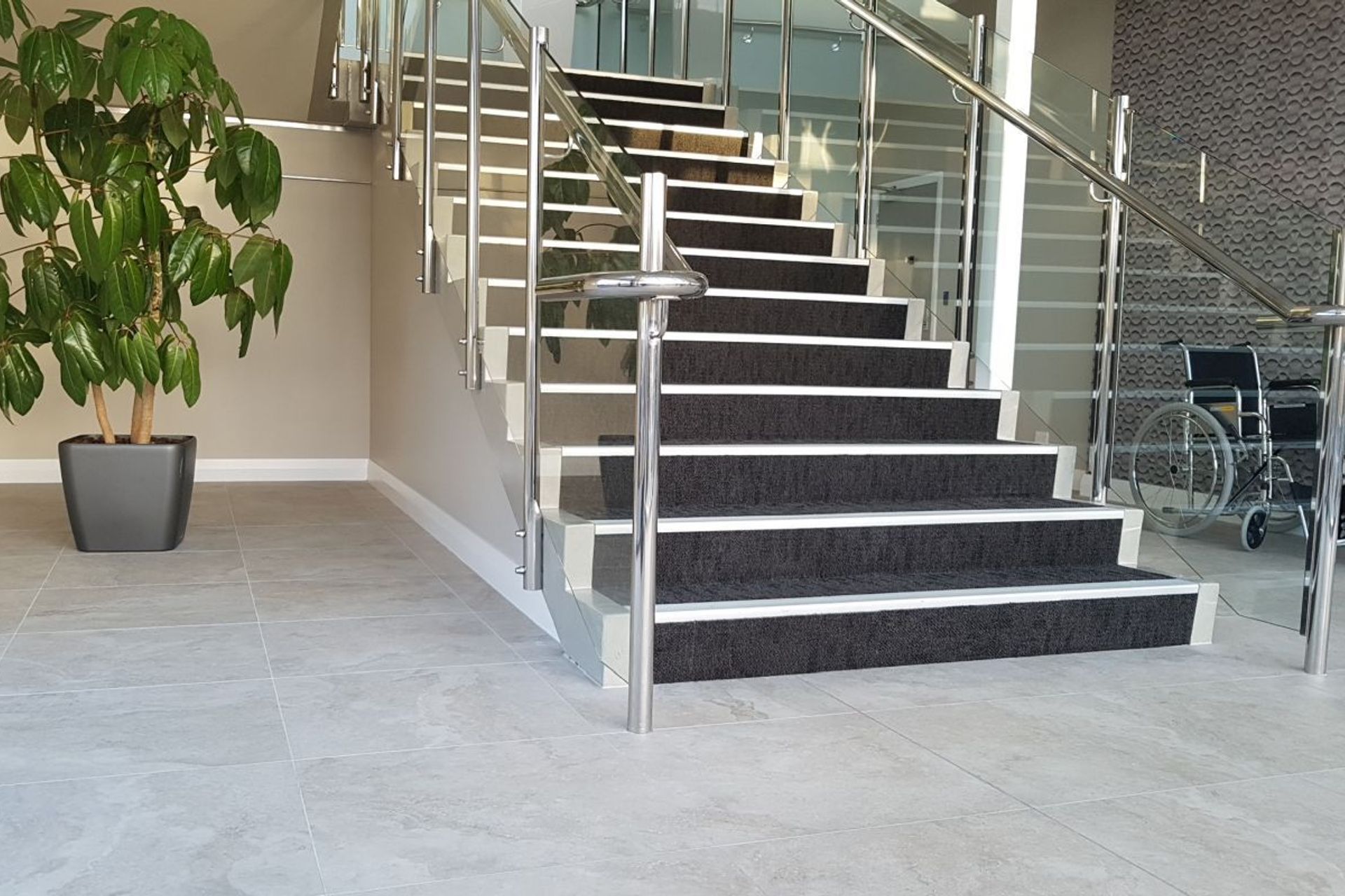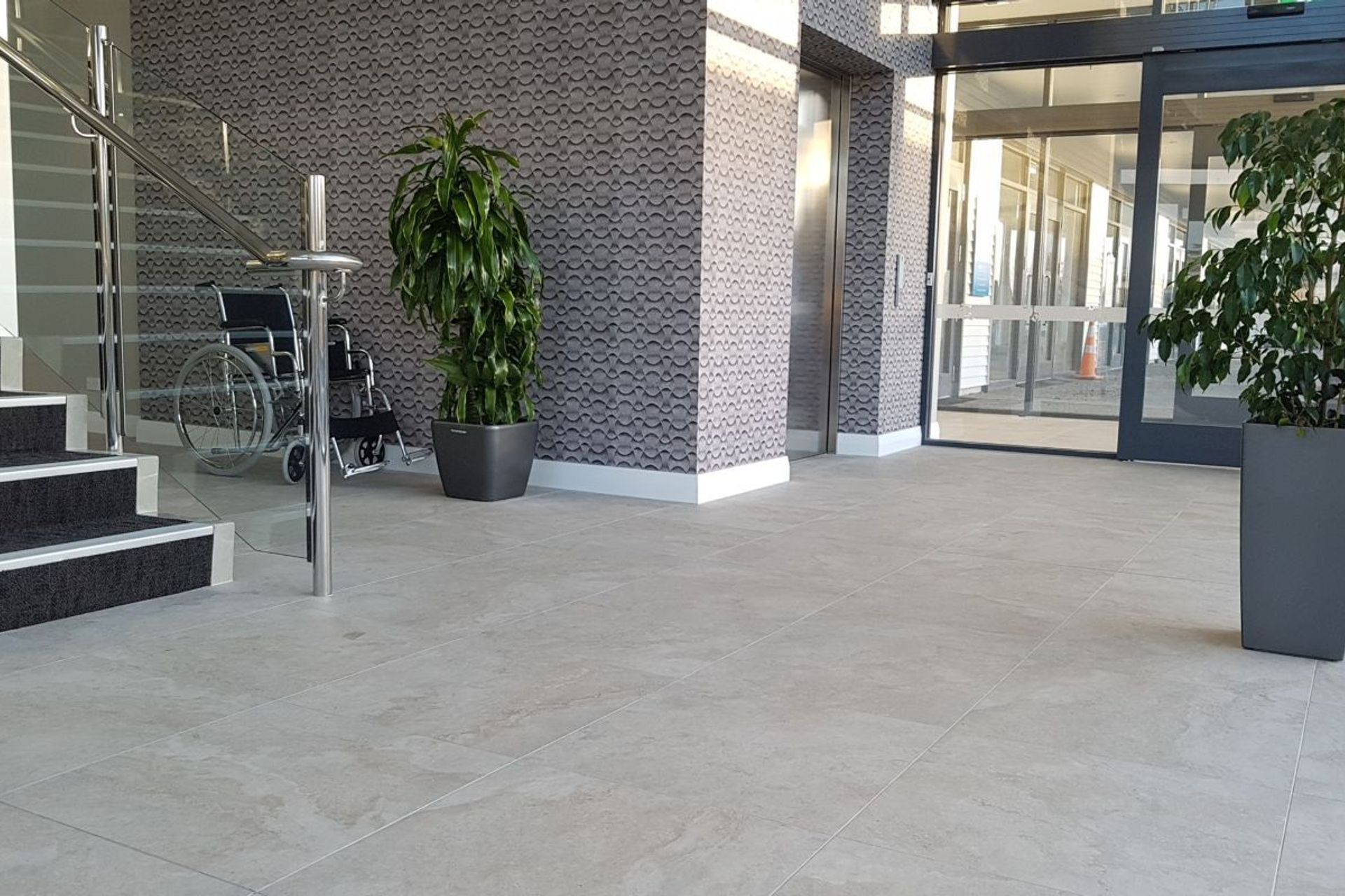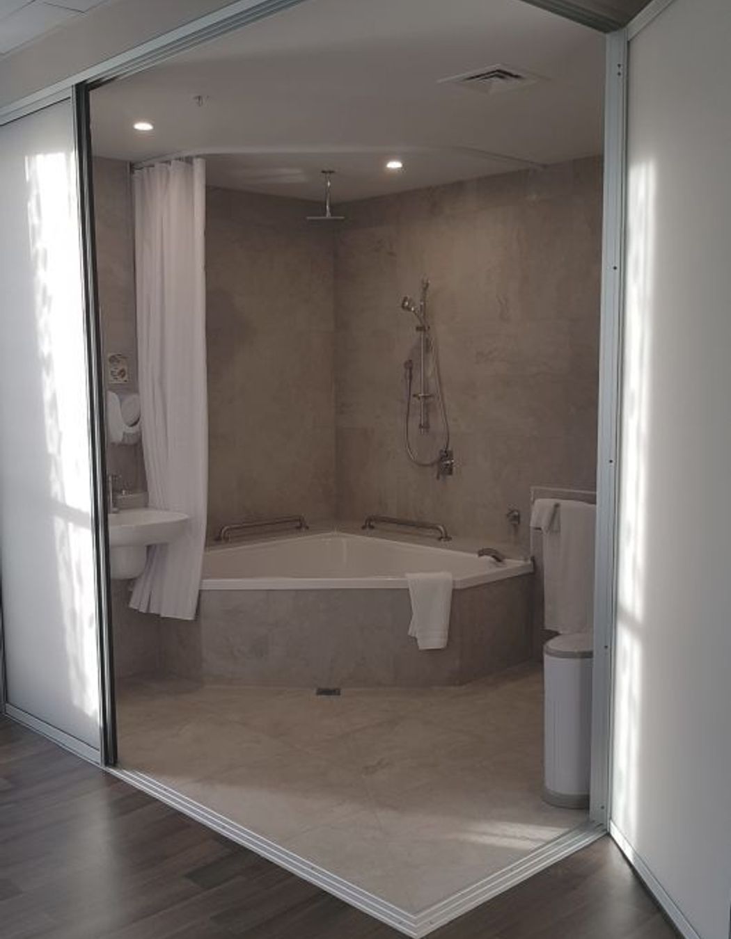 ArchiPro Project Summary - Newly built Birthing Centre in Manawatu offers a warm, homely environment for mothers and newborns, featuring Veiwtech Travertine Silver tiles and Acoufelt carpet tiles for enhanced safety and acoustic performance.