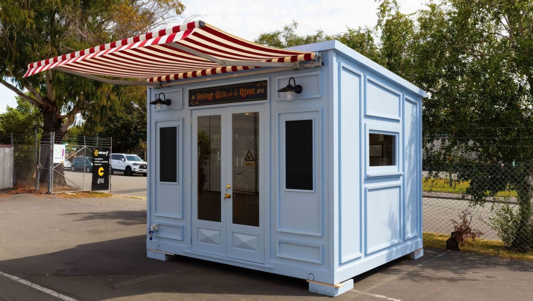 The custom design is 3.6m x 3m, which is smaller than the standard Little Pub of 4.3m x 3m. Its very French red and white awning makes a bold statement on the exterior, whilst the interior is set up with a full-length bench seat suited for both hosting meetings and providing a good space for those knock-off drinks at the end of the workday.