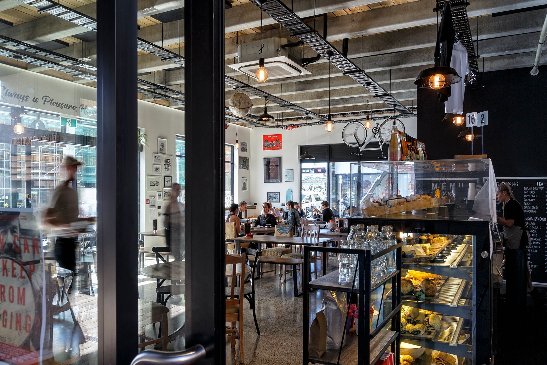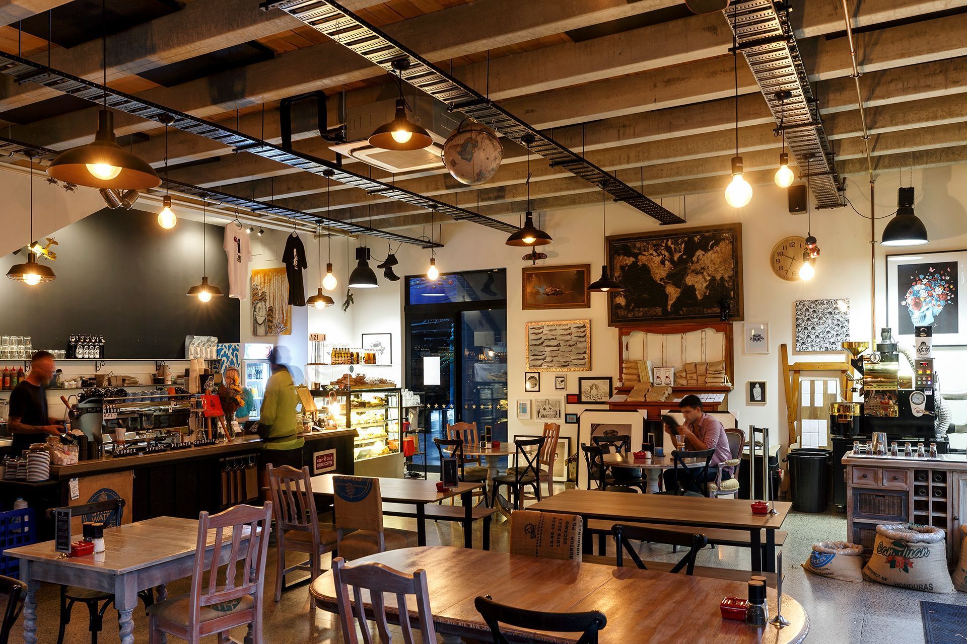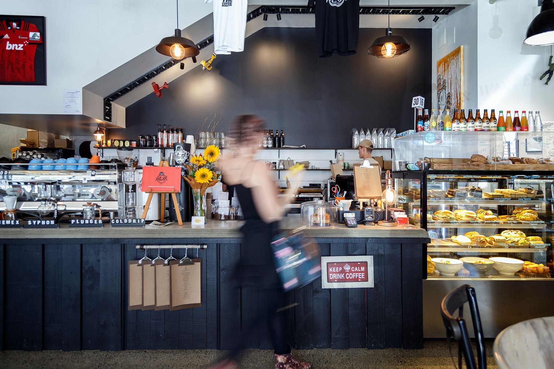 ArchiPro Project Summary - The Black & White Coffee Cartel features a modern design with a sleek black and white color scheme, optimizing customer flow and creating a cozy atmosphere.