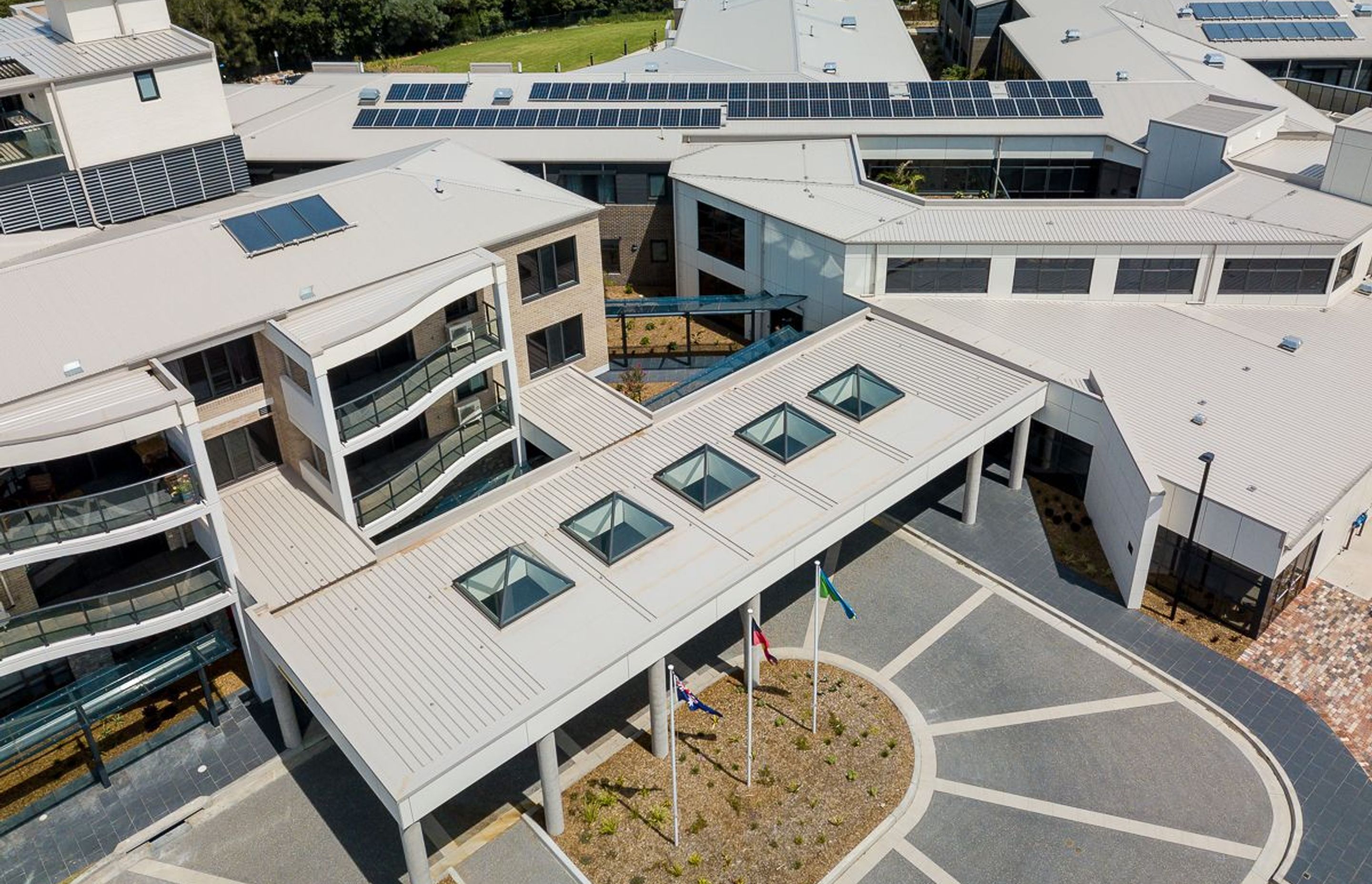 ArchiPro Project Summary - Comprehensive aged care and independent living facility featuring 134 accommodation beds, 59 apartments, community hall, meeting rooms, and the heritage restoration of Barroul House with café and community services.