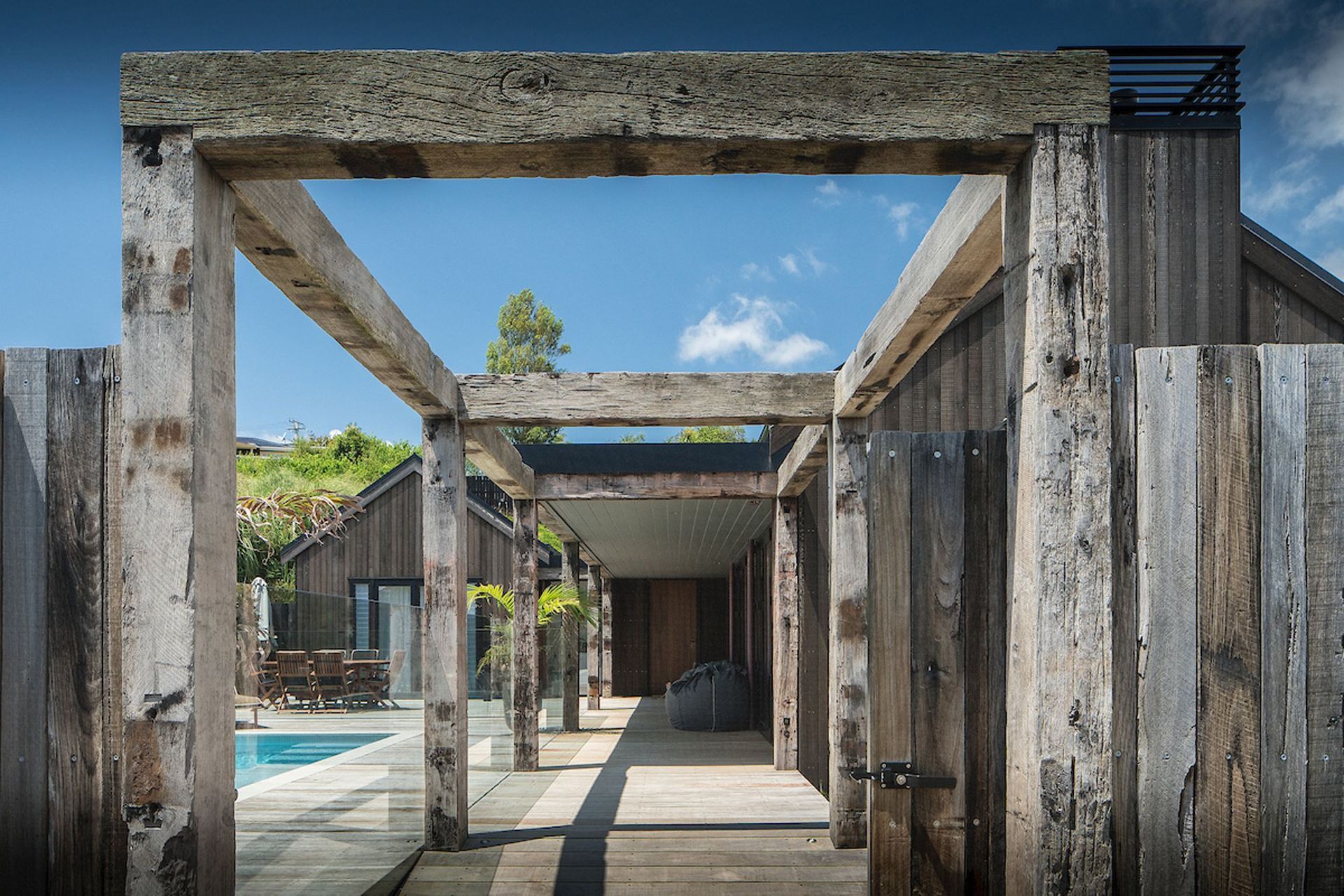 ArchiPro Project Summary - A private oasis on Waiheke Island featuring sleek, modern boatsheds with unique ceiling arrangements, durable timber finishes, and sustainable materials, offering all the comforts of home in a self-contained, eco-friendly setting.