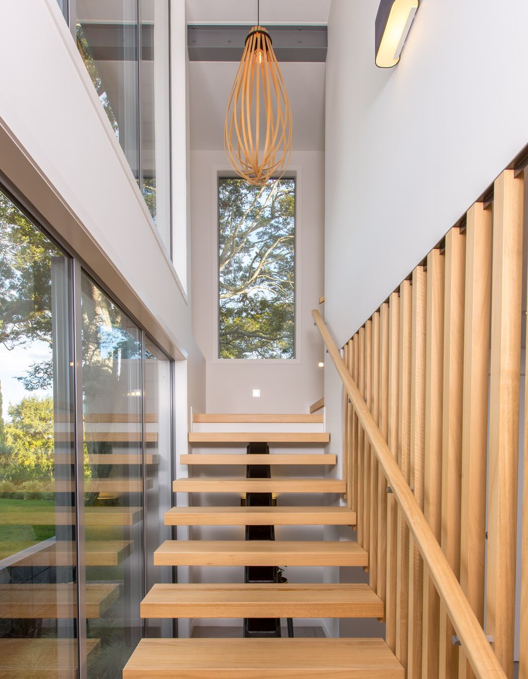 ArchiPro Project Summary - Award-winning contemporary home in Cambridge, designed to maximize stunning valley views while overcoming site challenges, featuring open-plan living, a striking entrance, and a harmonious blend with the natural landscape.