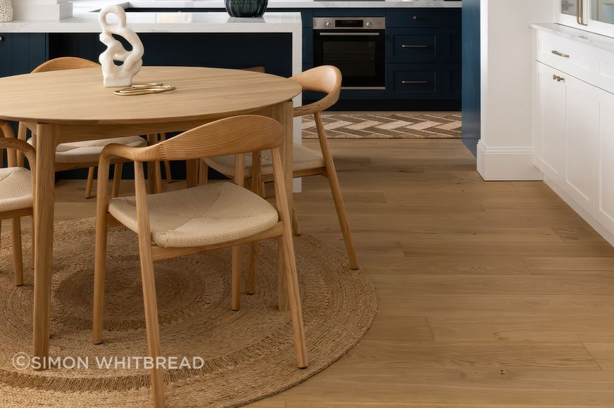 Hyde Plank from the Luxe Collection was utilised to seamlessly connect the kitchen, dining and living areas. Complimentary materials and finishes were incorporated throughout, ensuring a consistent and cohesive aesthetic.