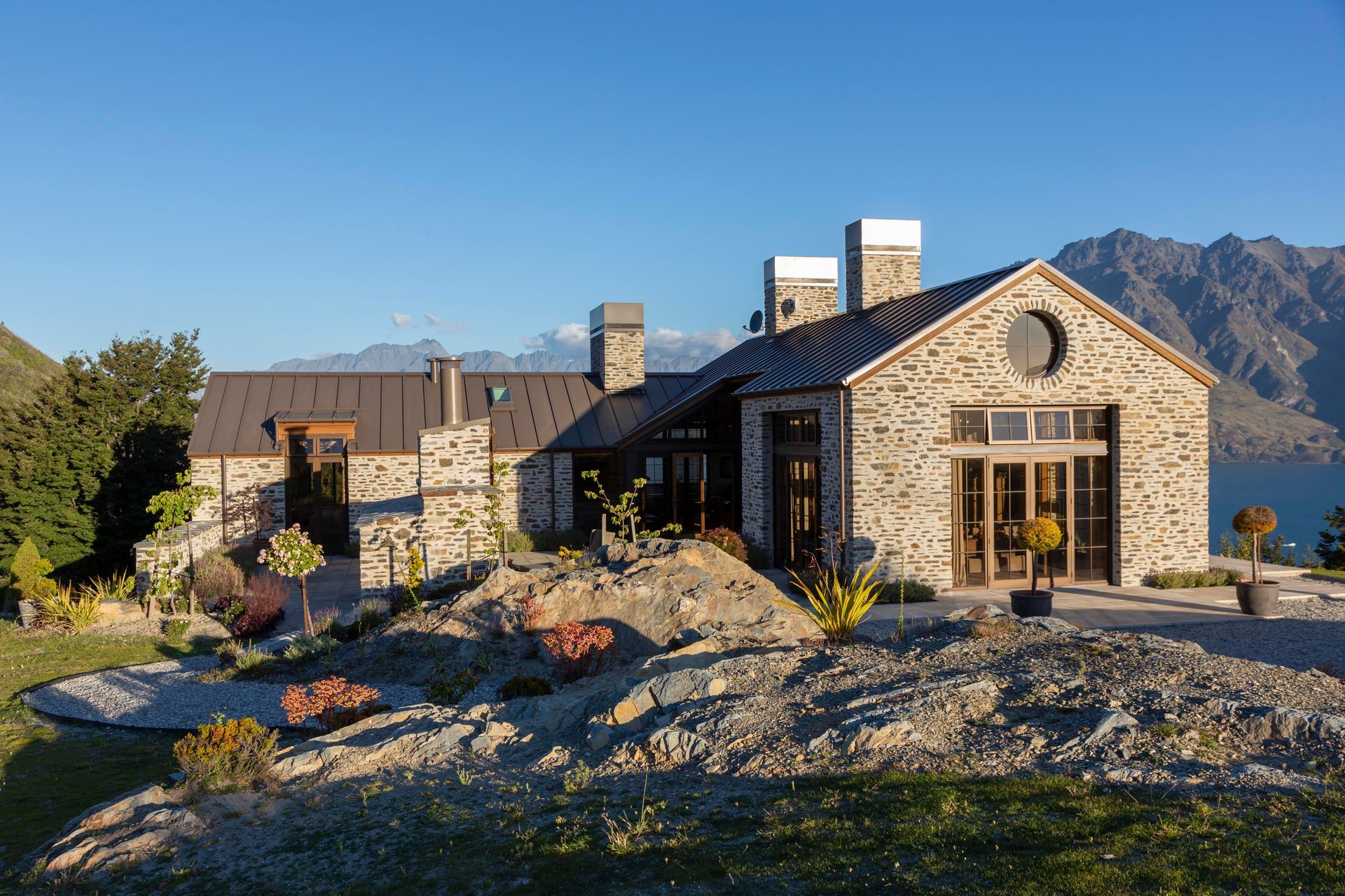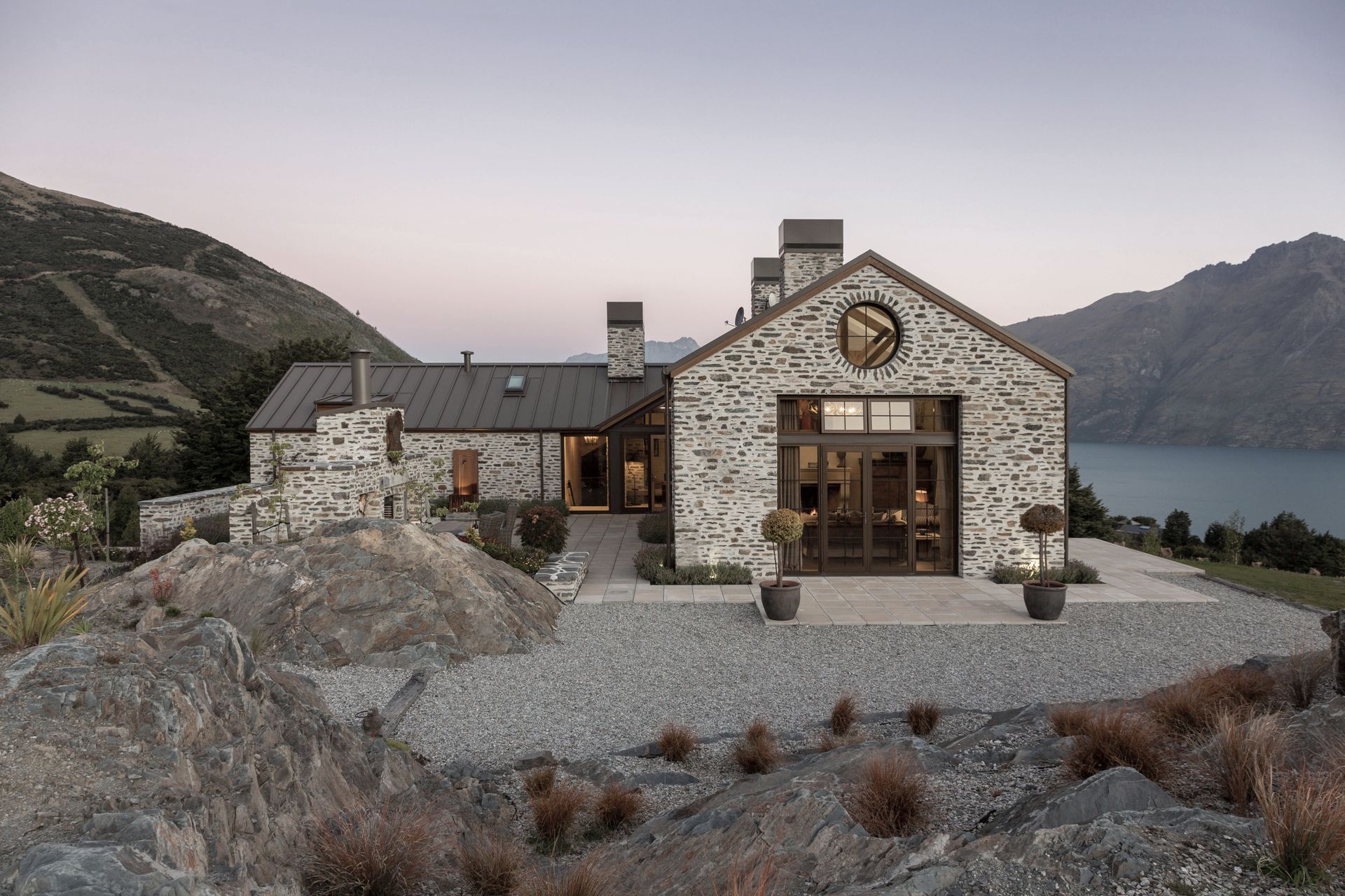 ArchiPro Project Summary - European-inspired home at Closeburn Station featuring elegant design, high-end finishes, and breathtaking 360-degree views of Lake Wakatipu, complemented by a self-contained guest cottage and thoughtfully landscaped grounds.