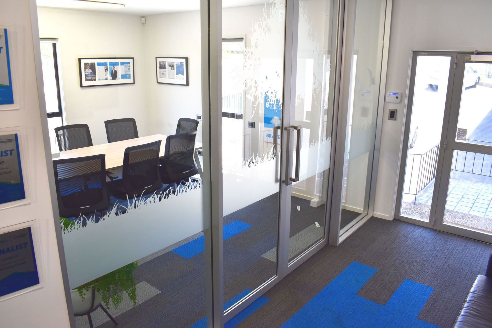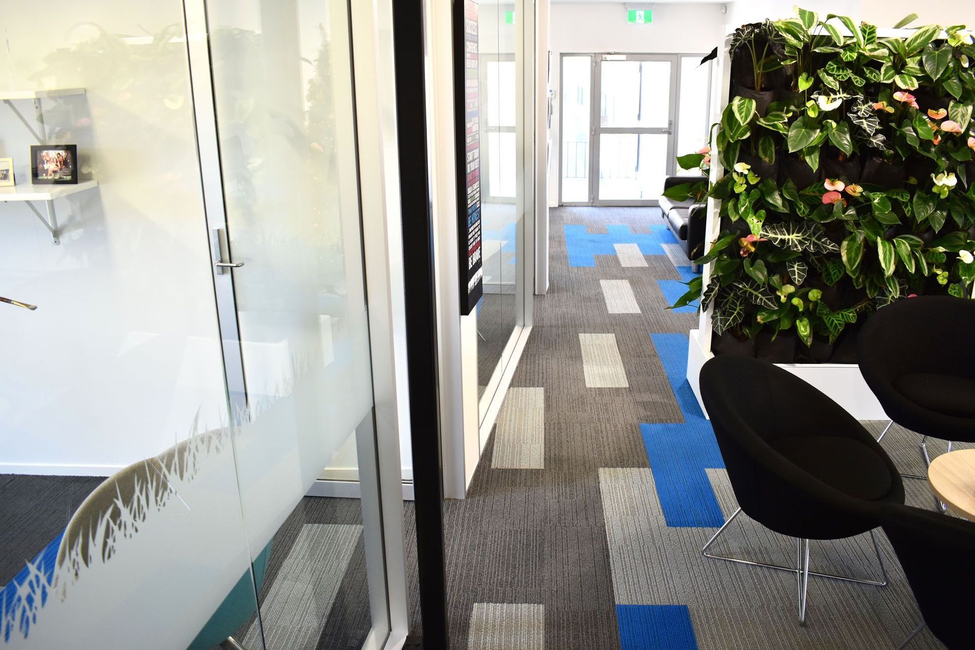 ArchiPro Project Summary - Comprehensive refurbishment of Brave Day Insurance's office space, featuring innovative design elements such as planked carpet tiles, a vibrant green wall, and custom furnishings, all tailored to enhance collaboration and reflect the brand's identity.